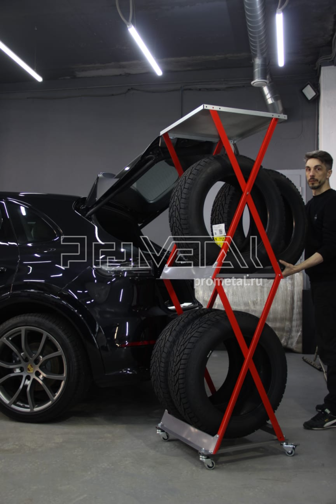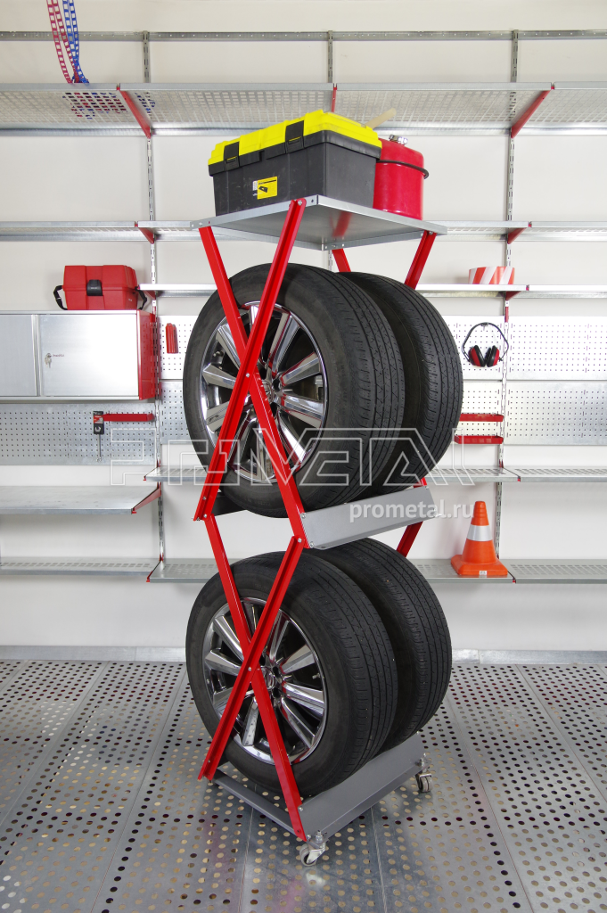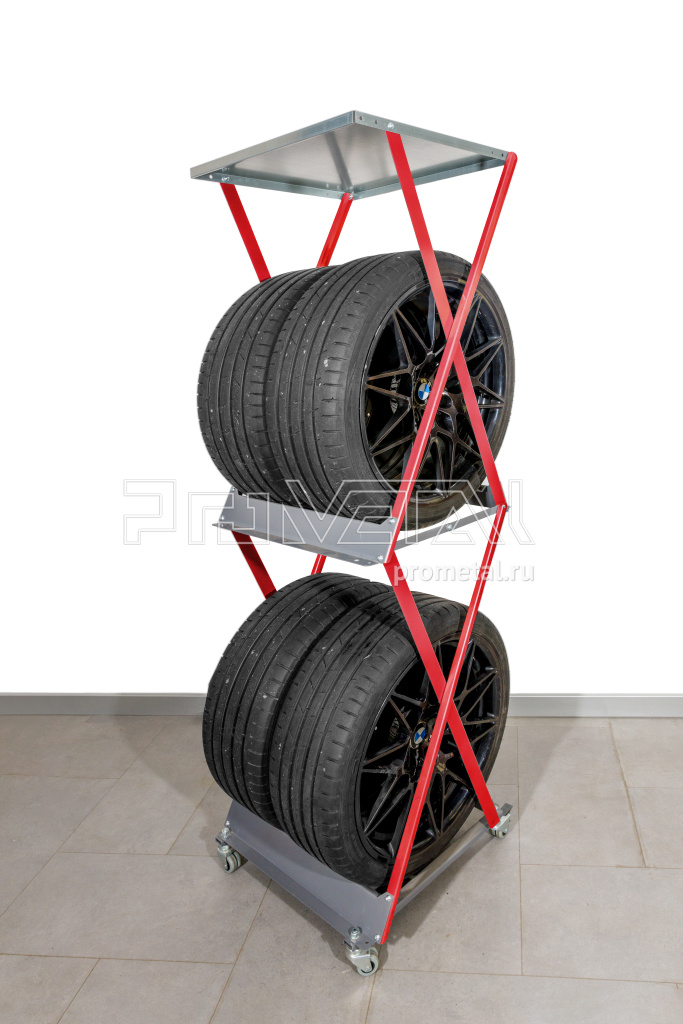 Стойка для хранения колёс и шин подойдёт для размещения любых автомобильных колёс диаметром до 82 см, весом колеса в сборе до 60 кг.