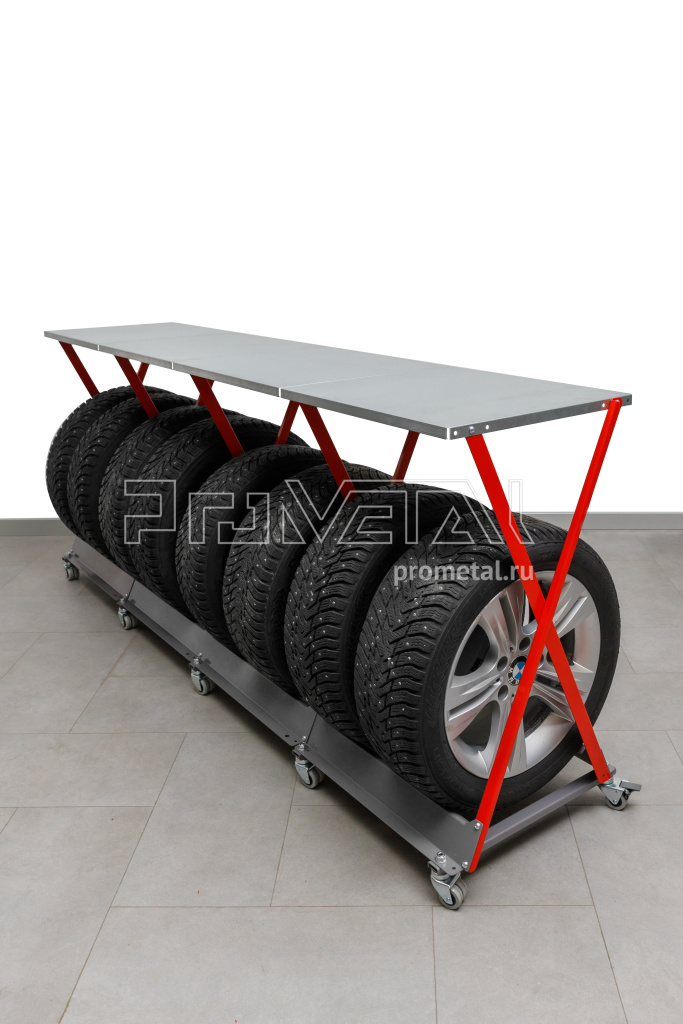 Стойка для хранения колёс и шин подойдёт для размещения любых автомобильных колёс диаметром до 82 см, весом колеса в сборе до 60 кг.