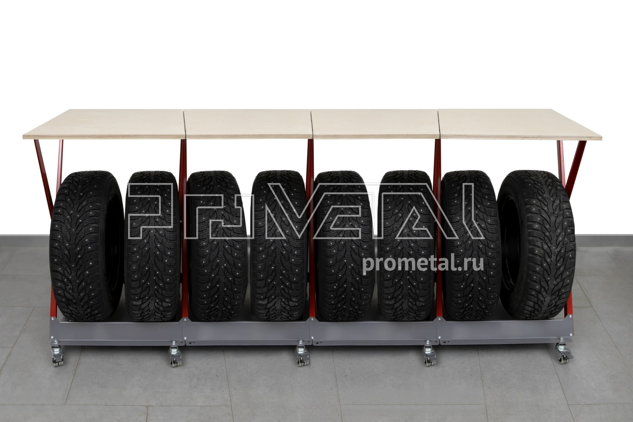 В такой комплектации мы получаем стол с хранением колёс - практичное решение для гаража, мастерской, кладовой, хозблока, автосервиса.