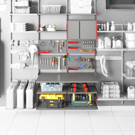 Наша модульная система хранения для гаража вмещает любые не удобные в хранении вещи — от колёс и косилок до инструментов, болтов и шурупов.
