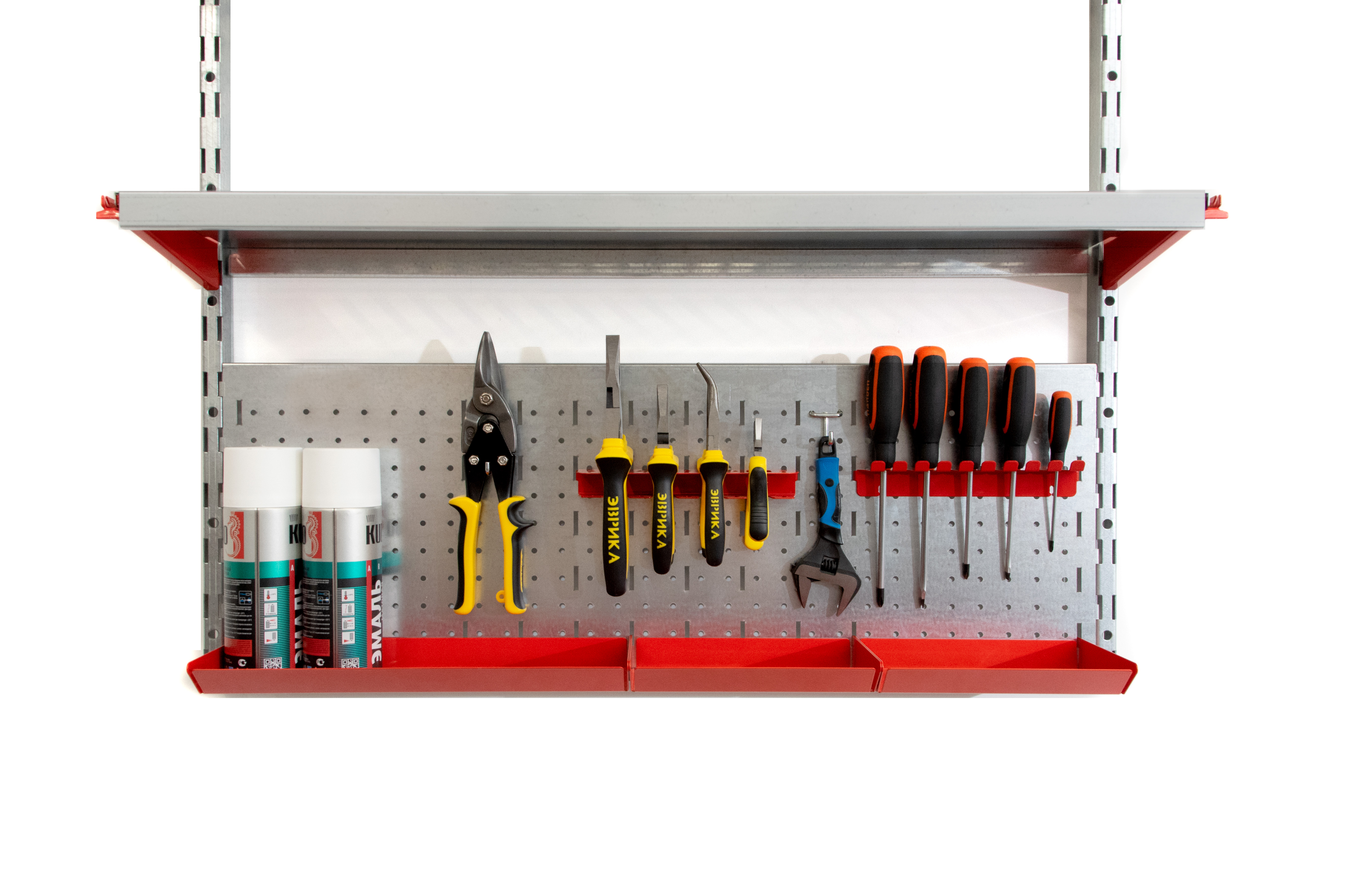 Все перфопанели изготовлены из прочного металла и покрыты защитным слоем, что обеспечивает долговечность и аккуратный внешний вид. Система легко дополняется и перестраивается под ваши задачи, превращая любую стену в функциональное рабочее место.