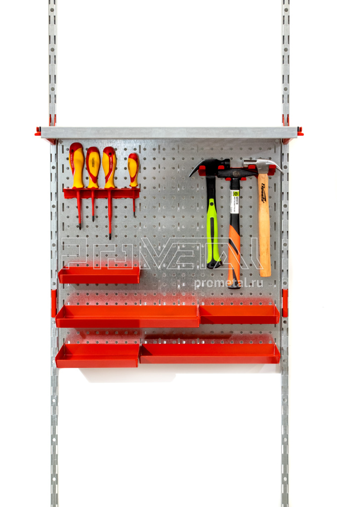В большинстве случаев более удобна будет ПерфоПанель на Вертикалях с жёстким позиционированием в стеллажной конструкции.