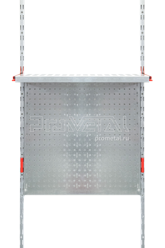 Фиксация не жёсткая - только по верхнему краю. Панель висит между Вертикальными несущими. В случае выбора именно такого варианта ПерфоПанели рекомендуем поверх неё расположить полку - для более жёсткого позиционирования панели.