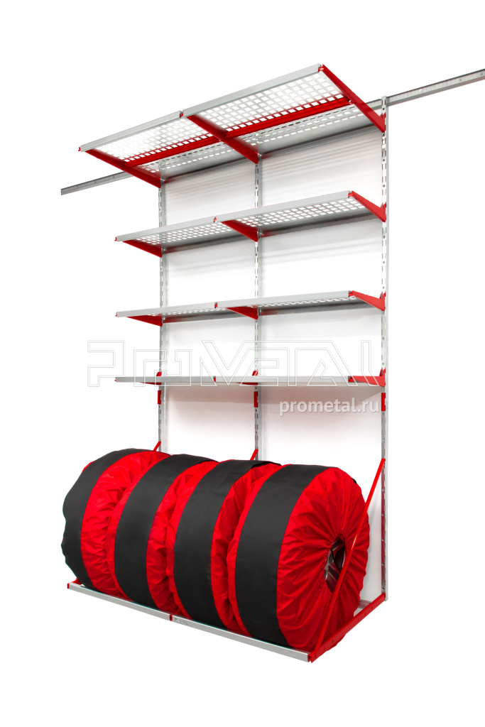 Подвес для хранения автомобильных колёс на стене в Навесную Стеллажную Систему ПроМеталл.