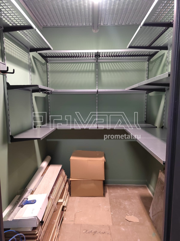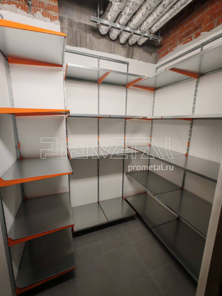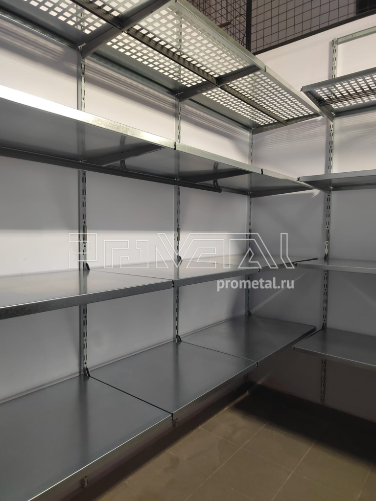 Для верхних рядов - выше 160 см от пола - рекомендуем использовать перфорированные металлические полки для гаража.