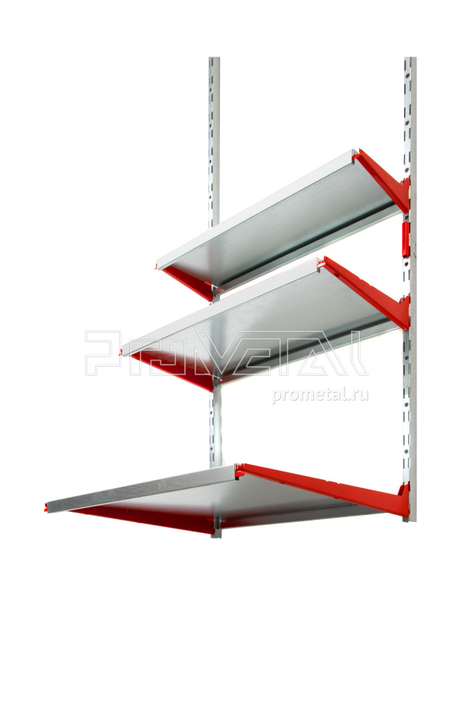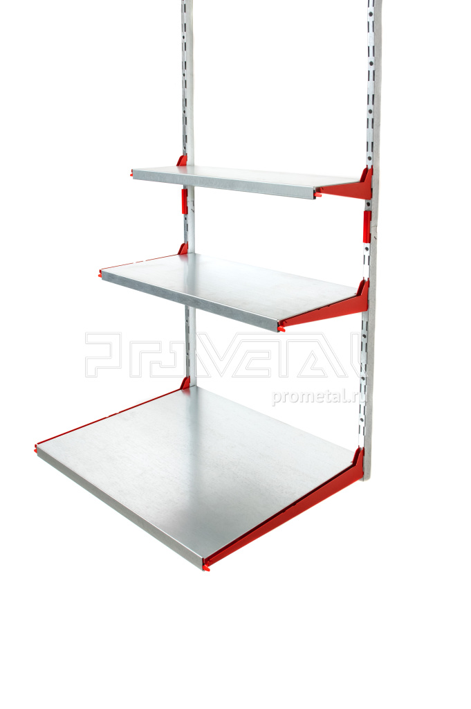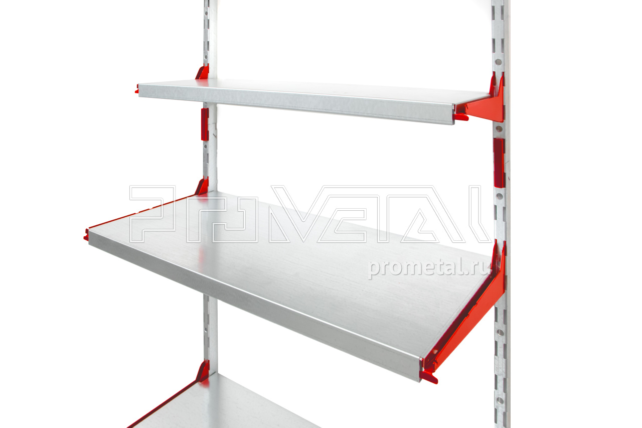 Две соседние полки, расположенные на одной высоте, удерживаются одним кронштейном.
