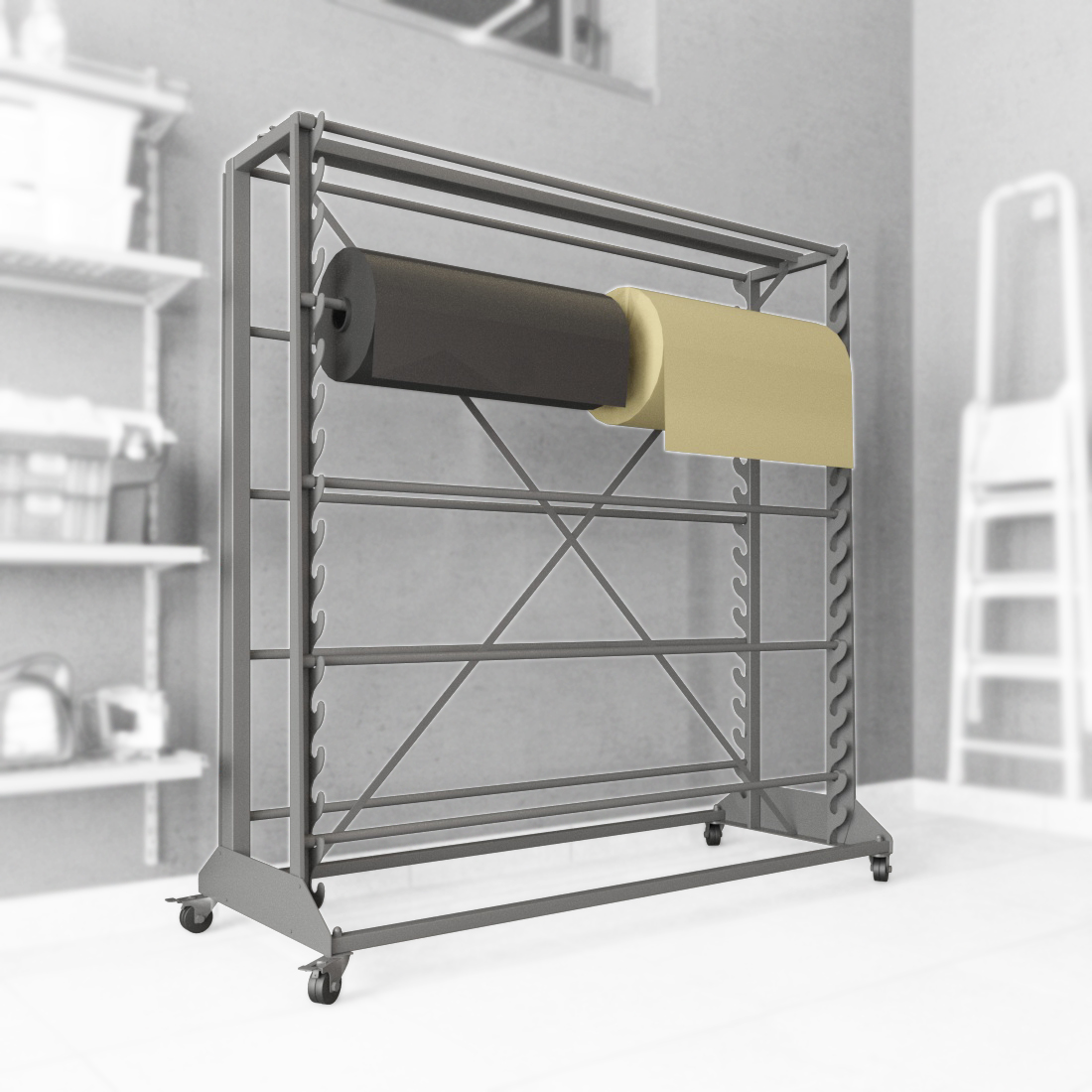 У нас вы можете купить удобные и практичные решения для торговли и складского хранения. Напольный стеллаж для рулонов и резак — это готовый комплекс для эффективной работы с рулонными материалами.