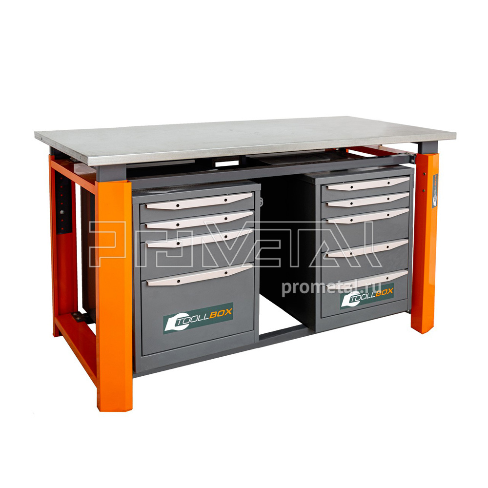 Профессиональный двухтумбовый верстак серии ToollBox производства Калужского Завода Металлоконструкций.