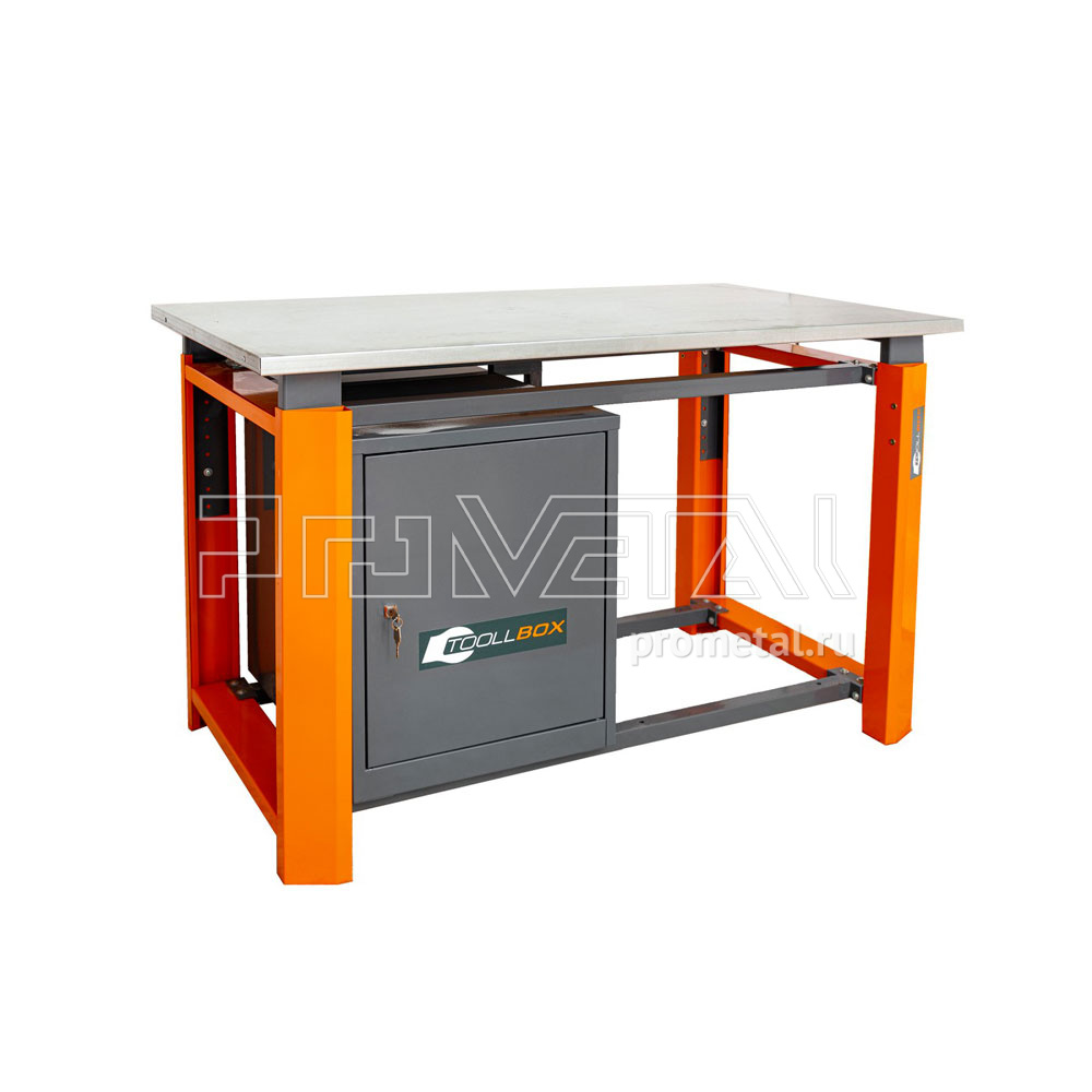Профессиональный однотумбовый металлический верстак серии ToollBox производства Калужского Завода Металлоконструкций.
