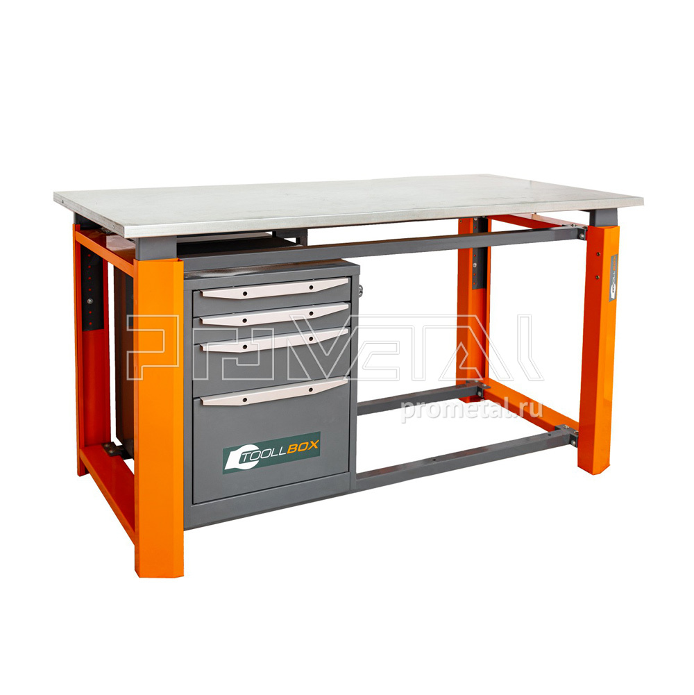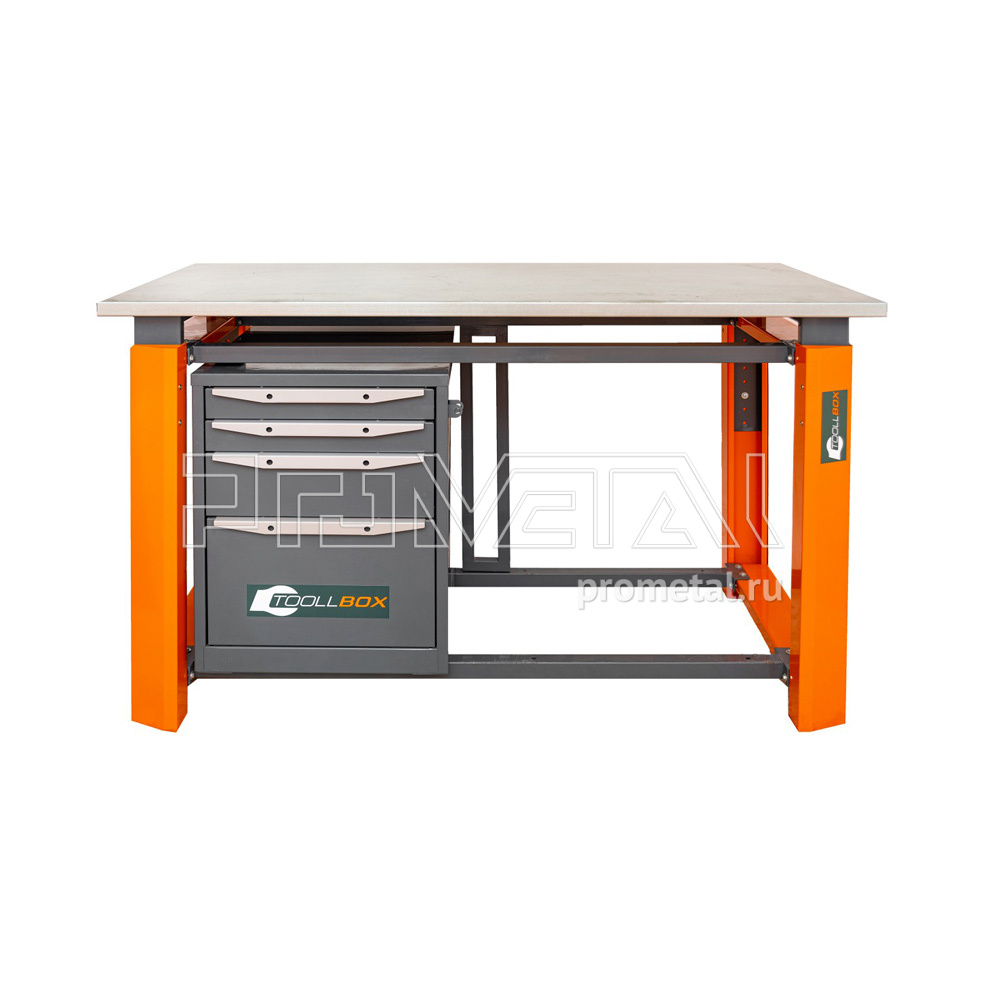 Профессиональный однотумбовый металлический верстак серии ToollBox производства Калужского Завода Металлоконструкций.