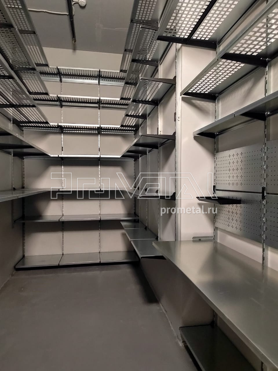 Что предполагается хранить: коробки, пластиковые боксы, стройматериалы, велосипед под полками, возможно инструменты в рабочей зоне и прочее. Необходима рабочая зона для небольших ремонтных работ.