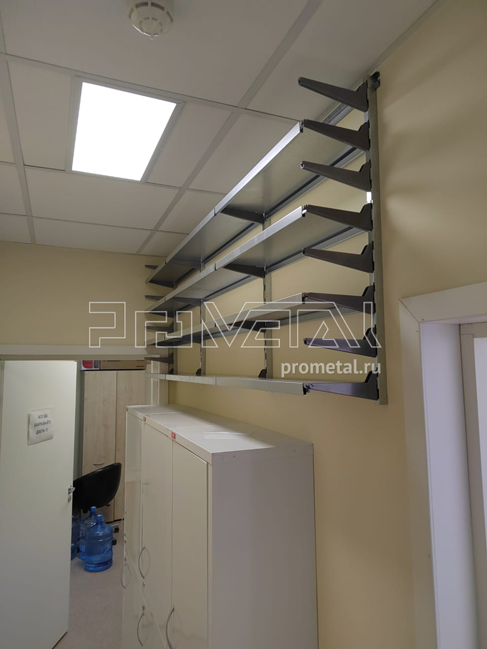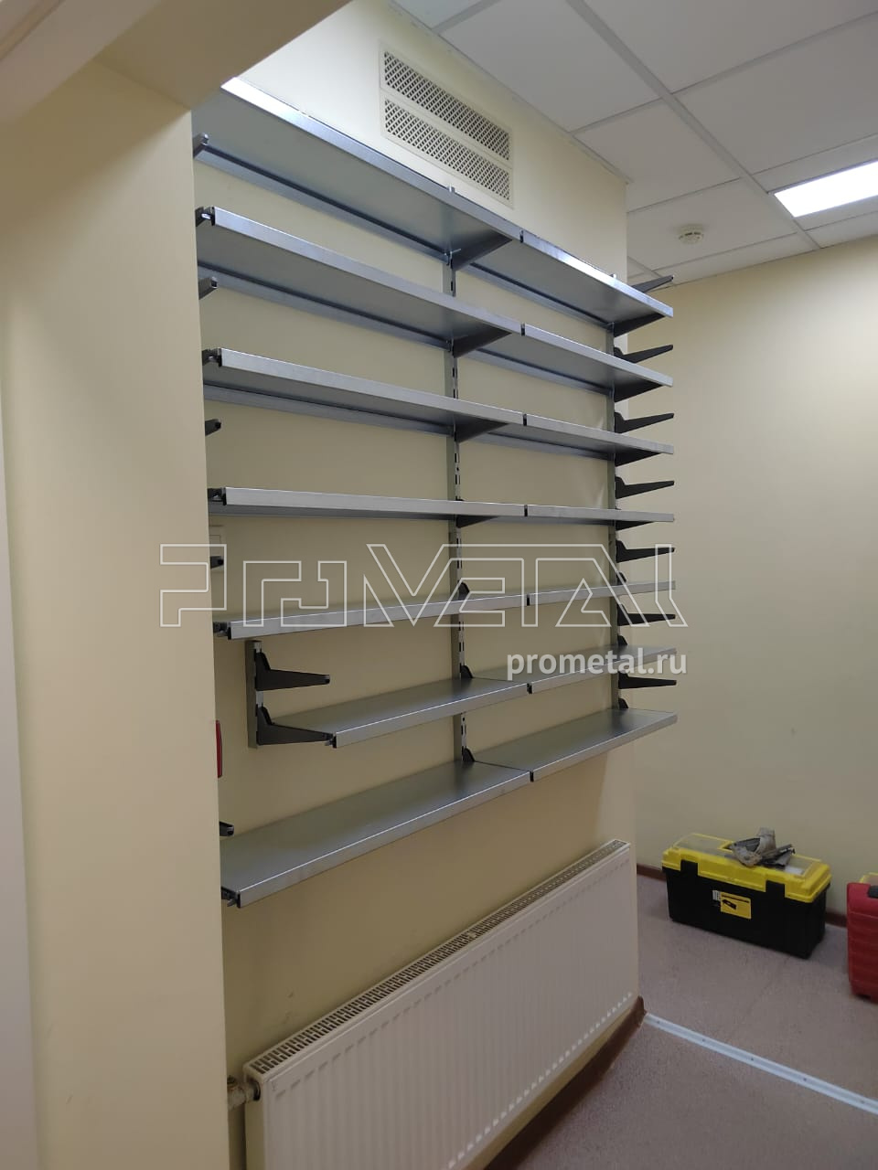 Представитель стоматологической клиники обратился к нам с запросом на установку металлических полок на двух стенах для хранения медицинских карточек пациентов. На следующий день мы провели замеры помещения и предложили два варианта проекта. Через пять дней работы были завершены.