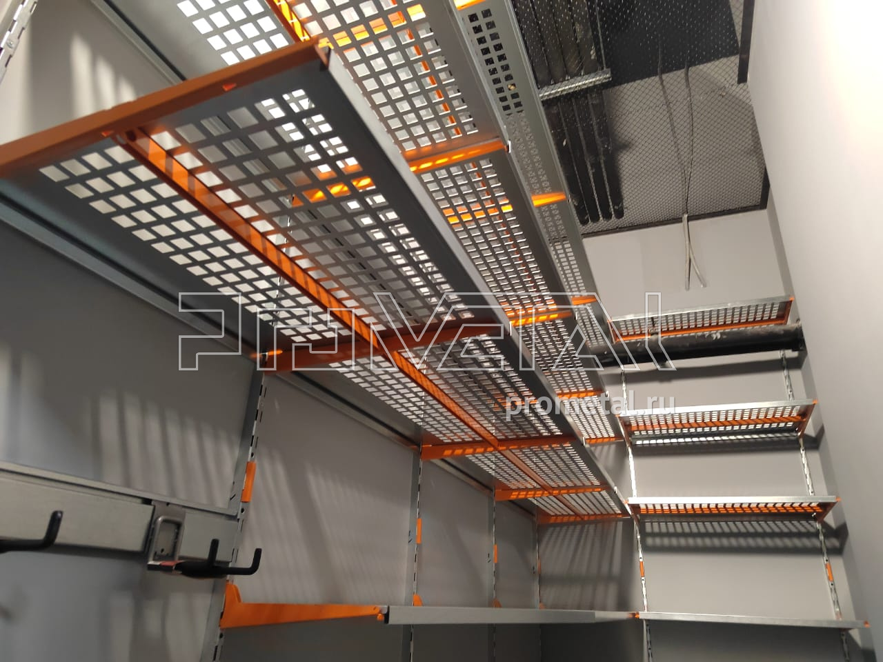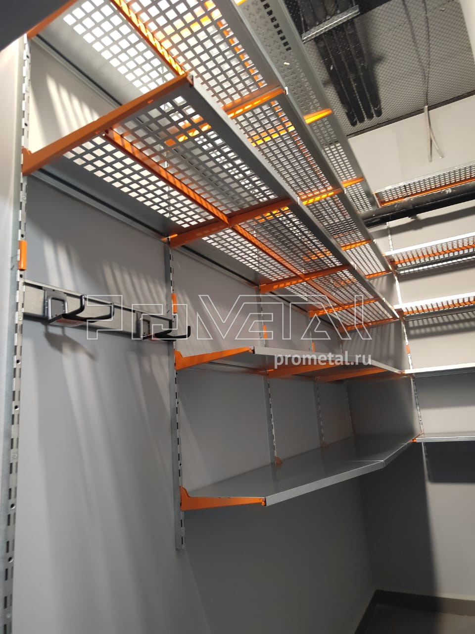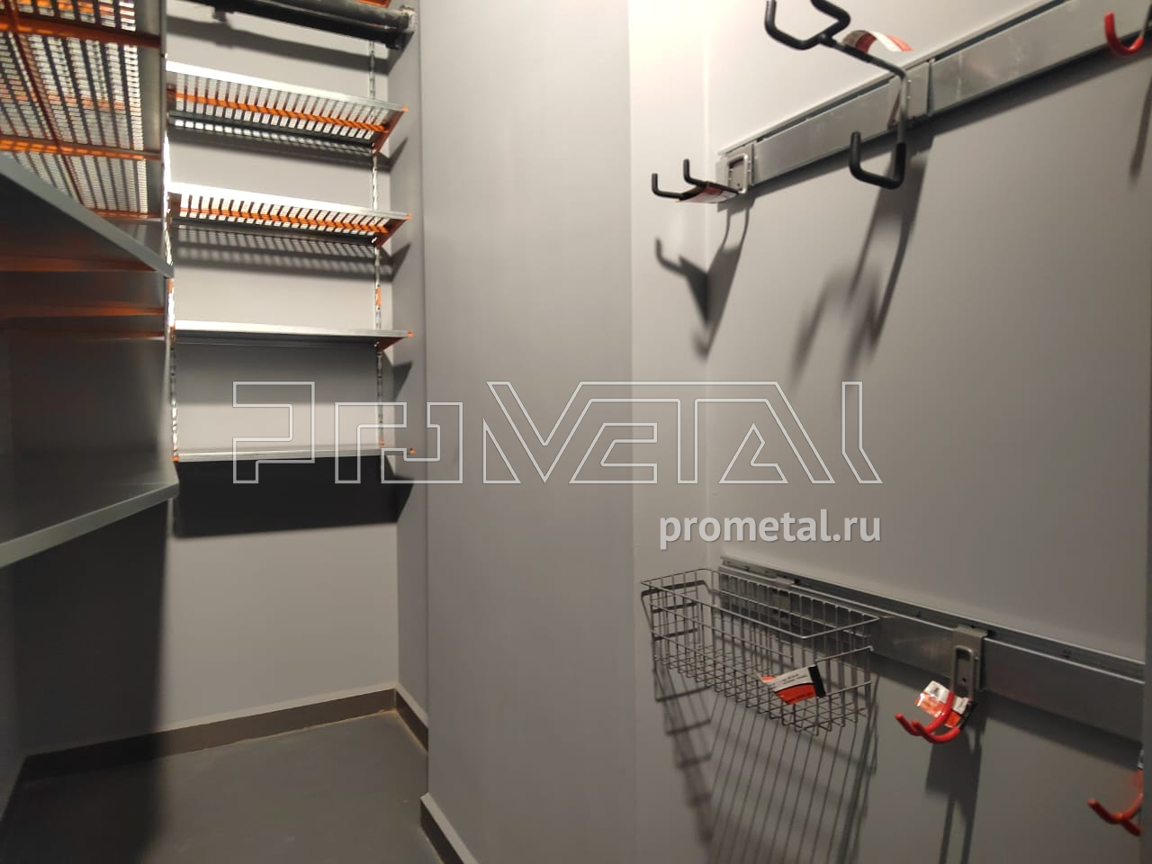 Размеры кладового помещения составляют 3,2 х 1,4 м, высота – 3,7 м. Это стандартная кладовая, которую мы оформляем в форме буквы Г.
