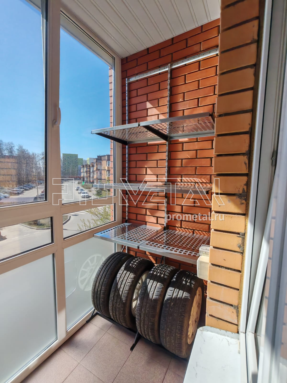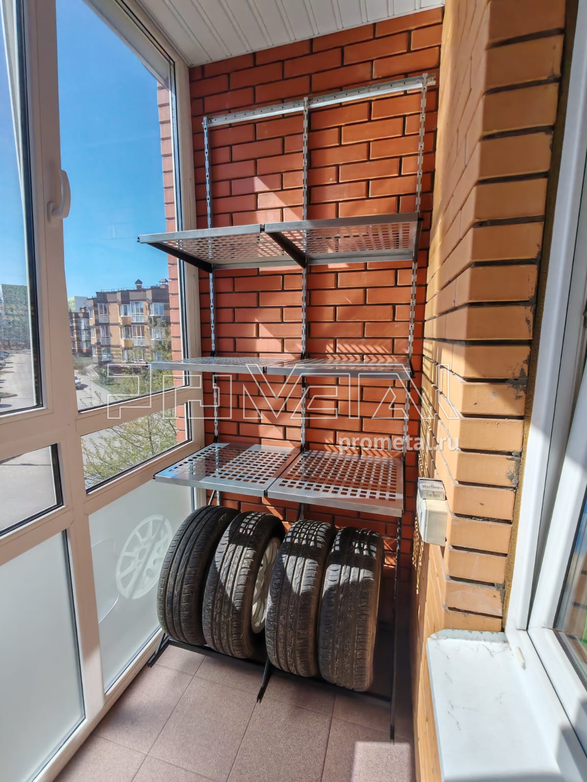 - С правой стороны балкона предусмотрена подвес-рамка (навесной стеллаж) для хранения комплекта колес.