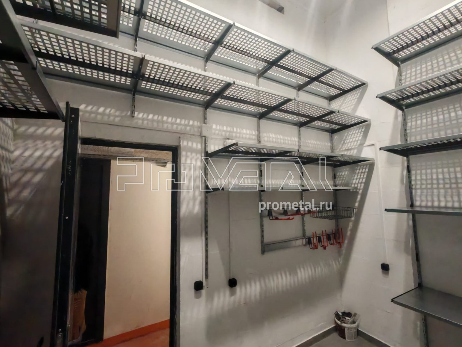 • Велосипеды и колеса: Чтобы место зря не пропадало, решили поставить их на пол, но под полки, чтобы сэкономить место и использовать его для настенного хранения. Сами полки сделали разной высоты, чтобы под них все идеально поместилось.