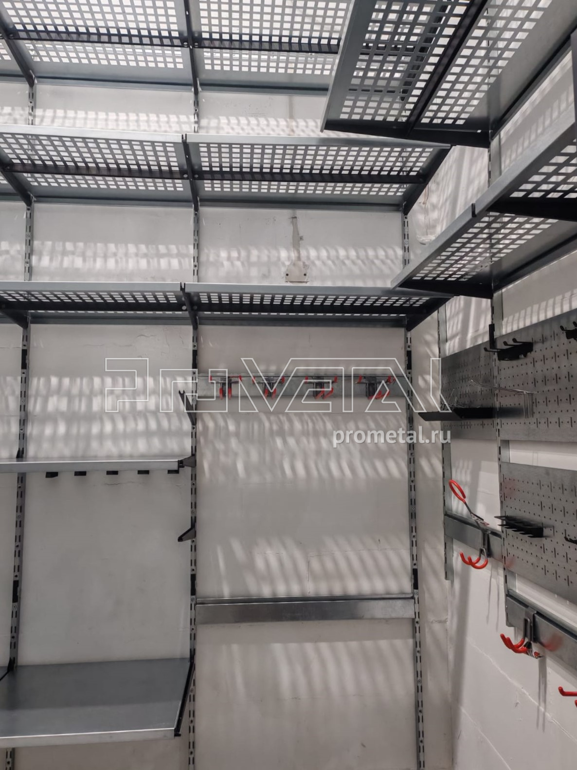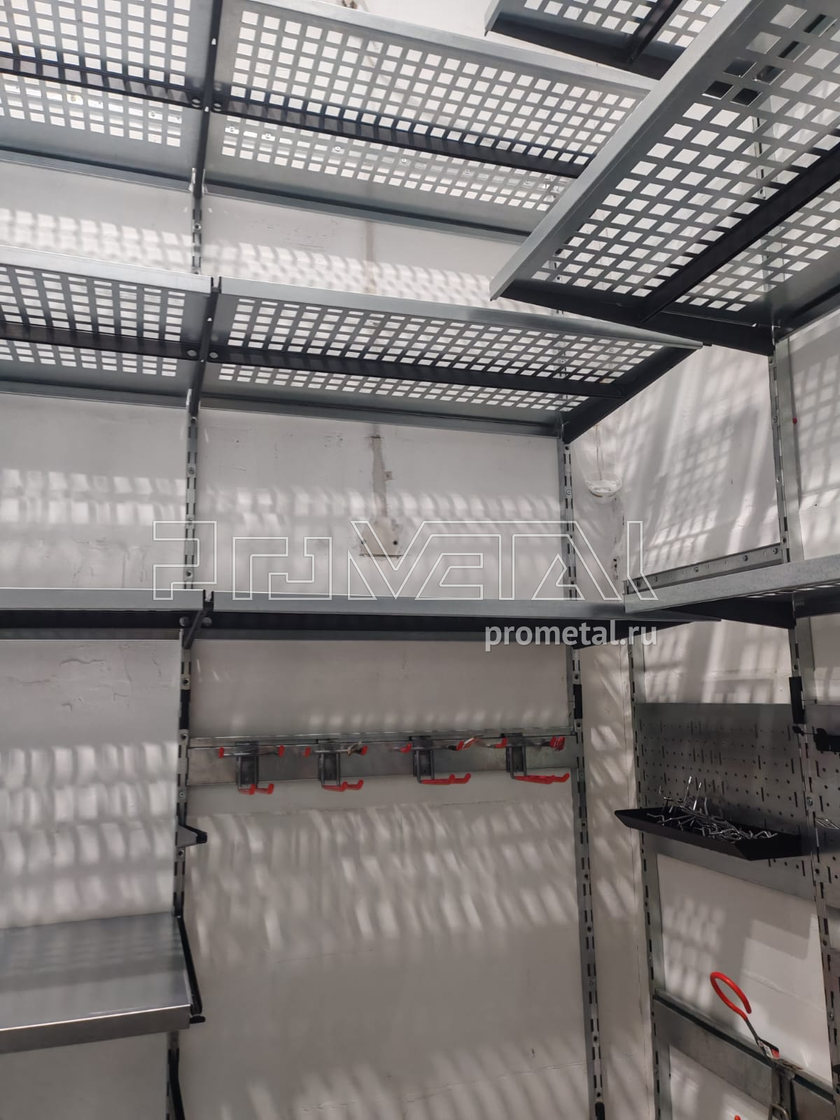 • Инструменты и мелочи: Повесили перфорированную панель. На нее можно повесить разные лотки или крюки – все самое нужное всегда будет под рукой.