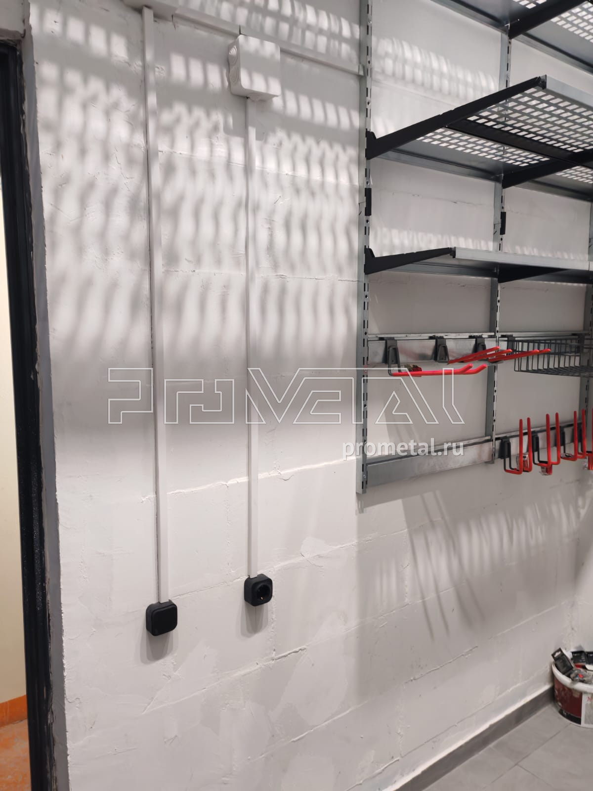 • На стены повесили рейлинги с крюками: Отличное место для лыж и сноубордов. Теперь они стоят аккуратно, не занимают пол.