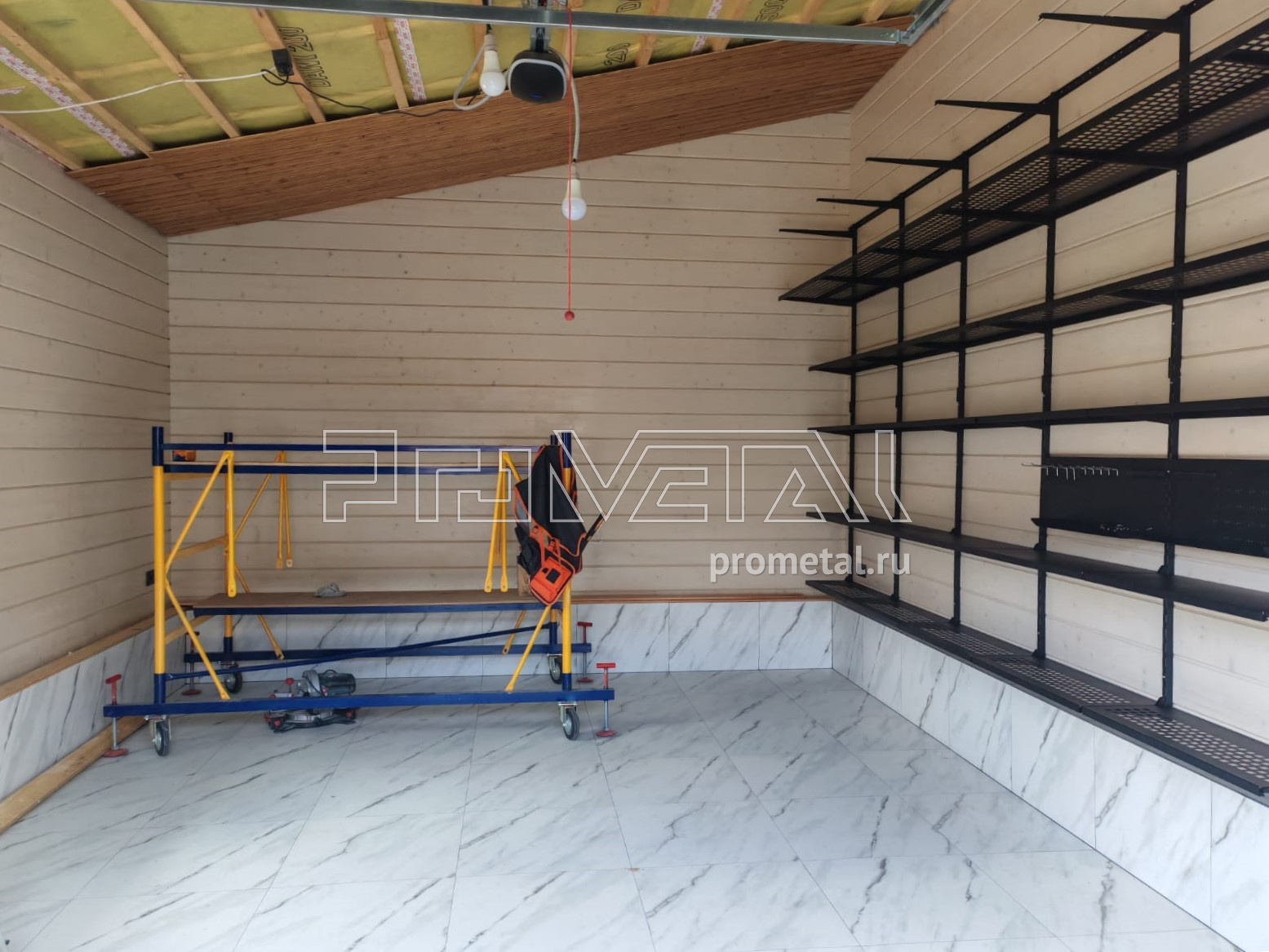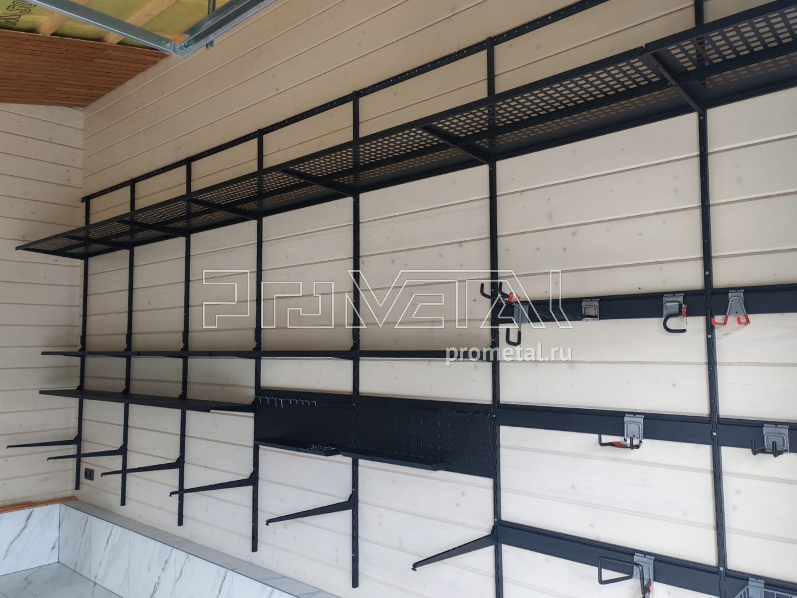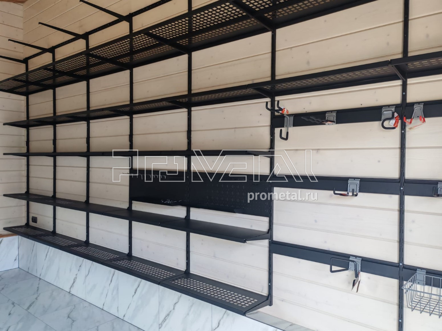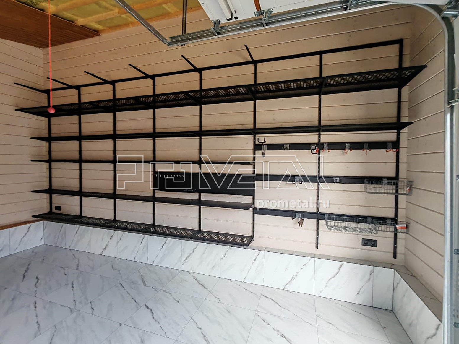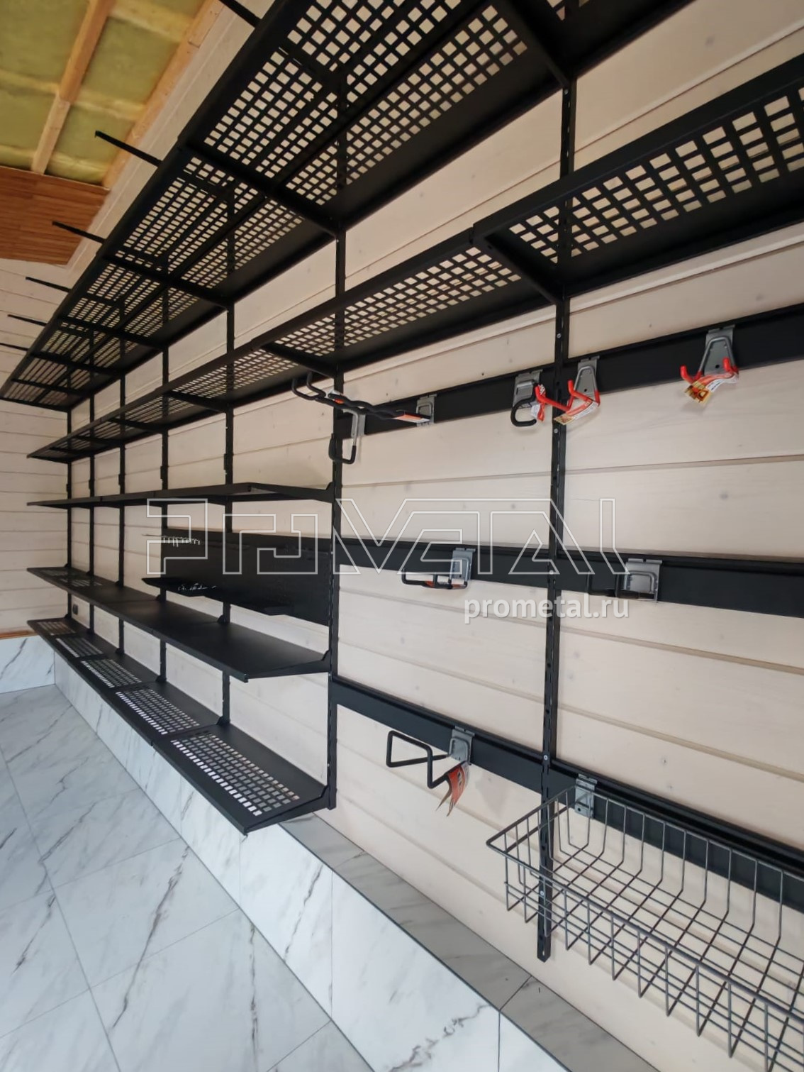 • Рейлинги с S-образными крюками: Установлены для удобного размещения часто используемого инвентаря. Их стратегическое расположение в непосредственной близости от ворот гарантирует оперативный доступ к необходимым предметам.