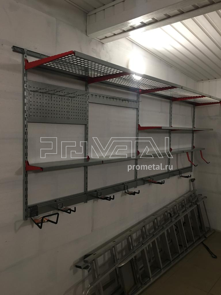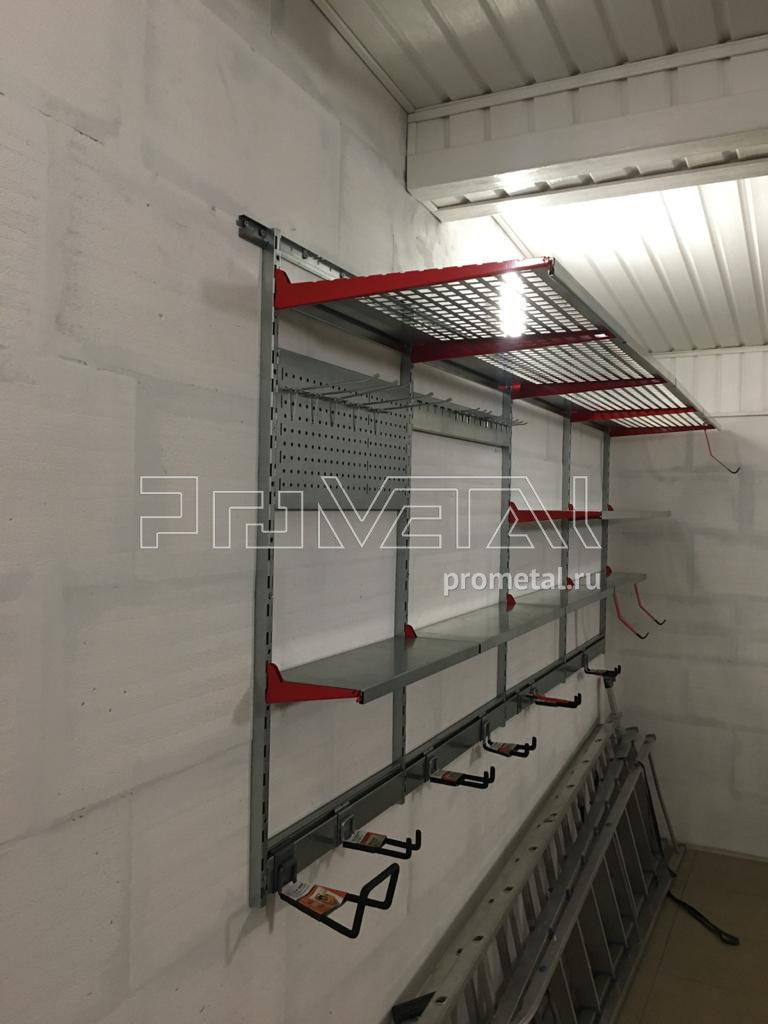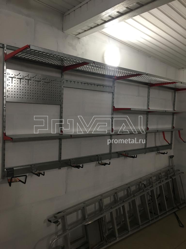 Гаражный бокс в Москве. Планировку делали как обычно - дистанционно по замерам заказчика. Все пожелания заказчика реализованы: складной верстак, шкафчик с замком, перфопанели для мелочей и небольших инструментов, рейлинги с крюками для крупных инструментов, а также полки для хранения различных вещей. В проекте предусмотрели хранение для велосипедов на крюках под полку. Монтаж выполнил наш мастер - Геннадий. Заказчик доволен - как обычно по результатам нашей работы ;-))