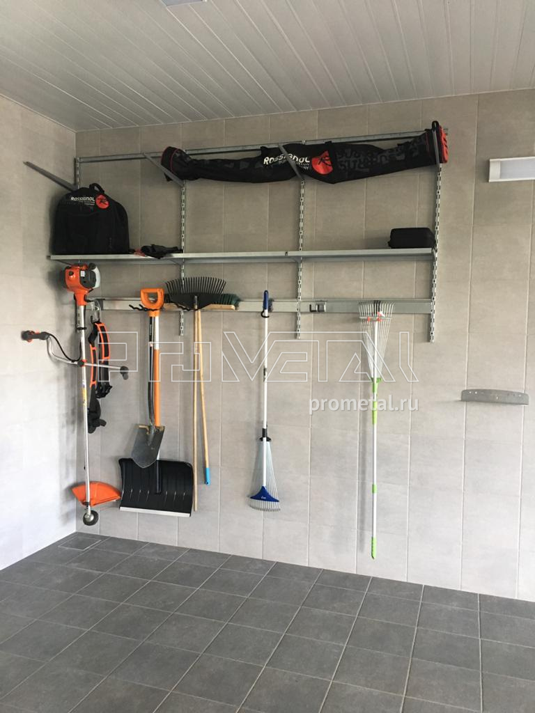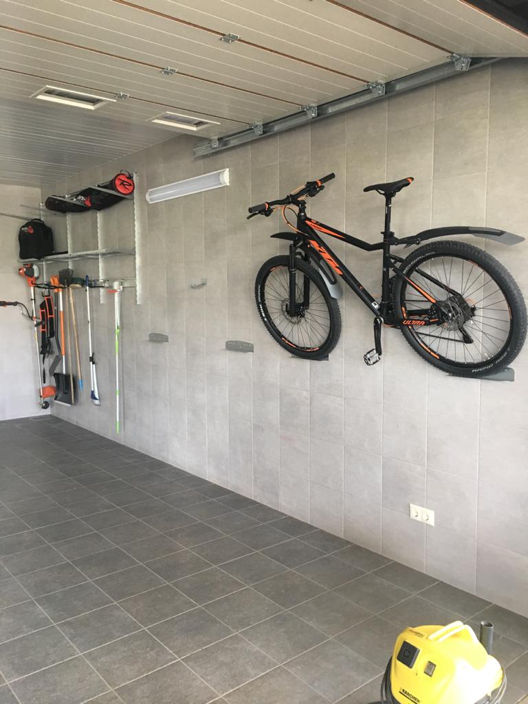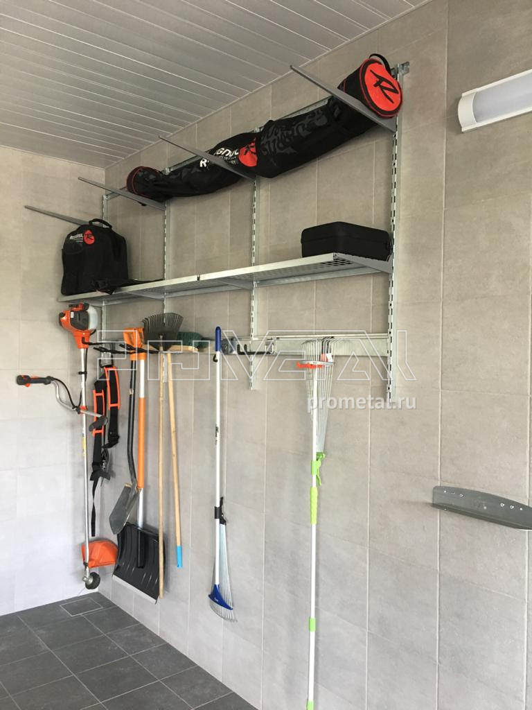 После обращения Руслана и просьбе с помощью для замера помещения подумали что будем обустраивать весь гараж, но хозяин поставил четкую задачу. Разместить горизонтально вдоль стены 2 велосипеда, несколько полок и держатели для садового инвентаря. Согласовали проект - смонтировали! Руслан остался очень доволен нашей работой, через несколько недель дозаказал несколько крюков Эссе.