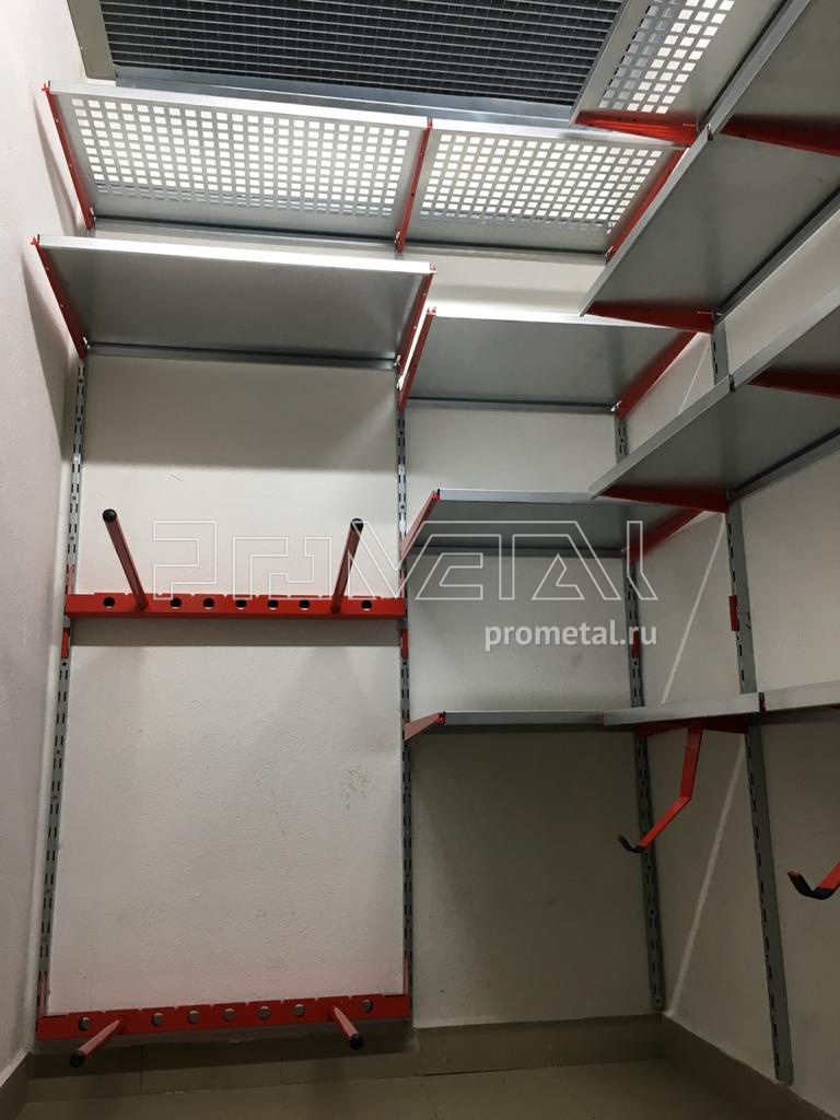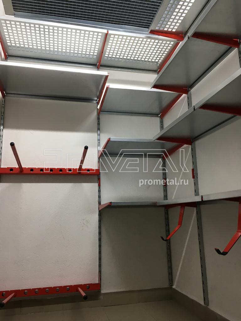 Предусмотрели полки по всему периметру, кронштейны для хранения колёс.