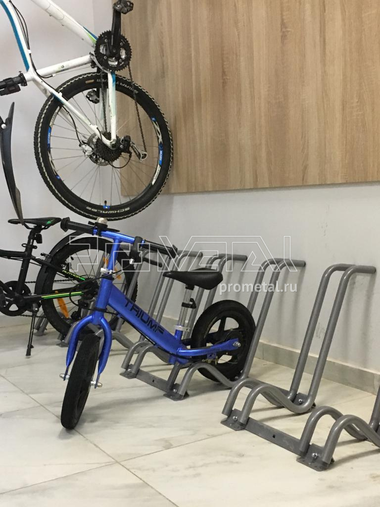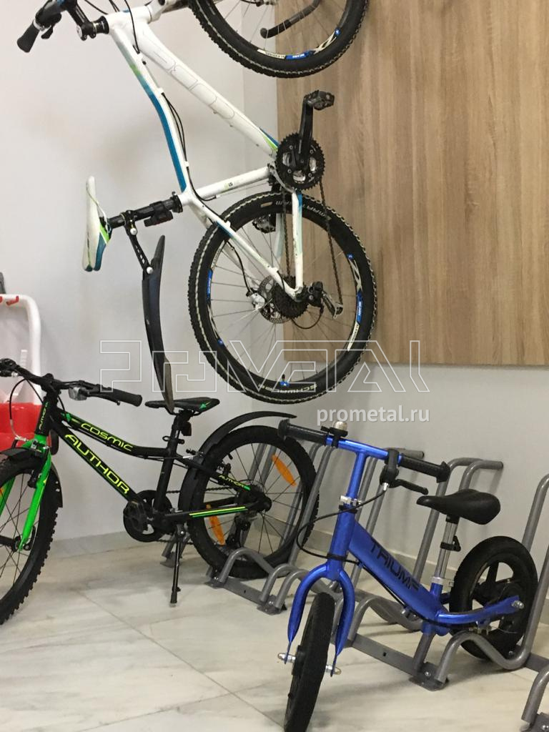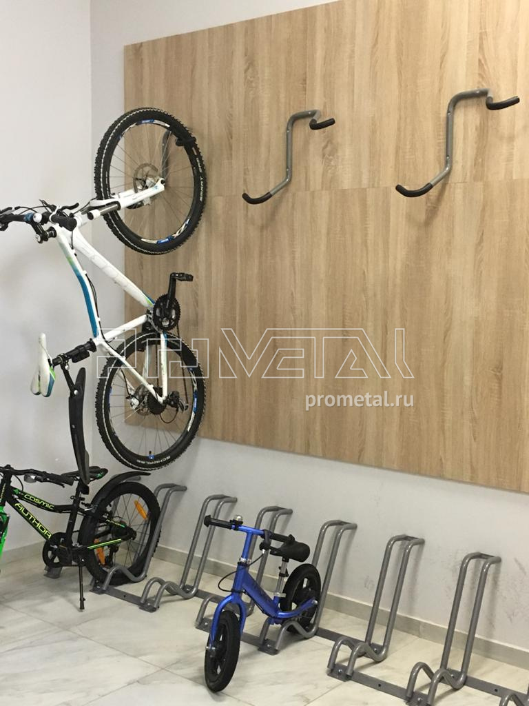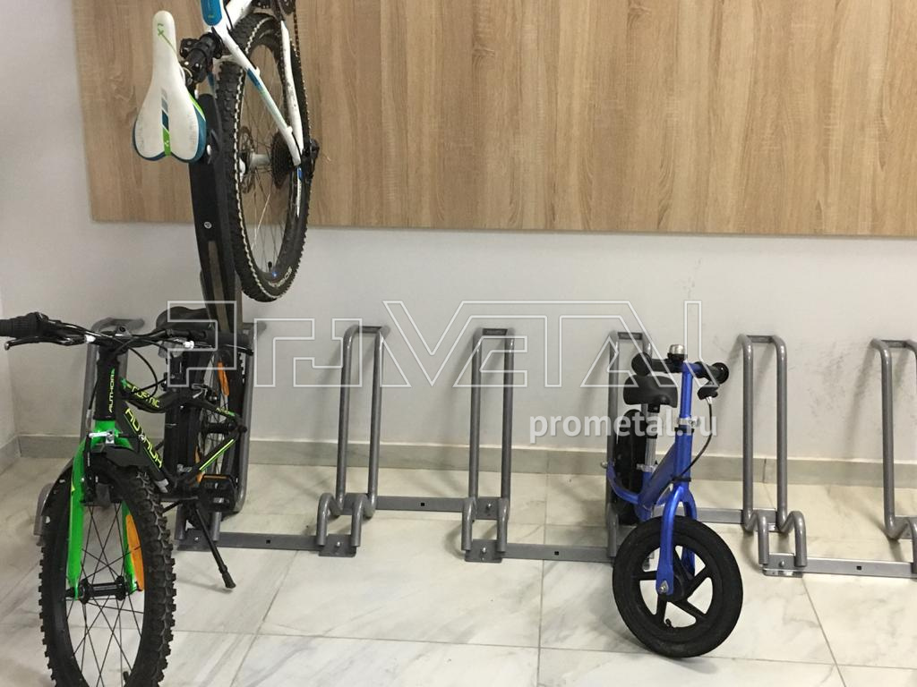 Взрослые велосипеды будут храниться на подземном паркинге, для них предусмотрели 13 велопарковок. Вы можете ознакомиться с всеми возможными вариантами хранения велосипедов в разделе Стойки и подвесы для велосипедов и фэтбайков.