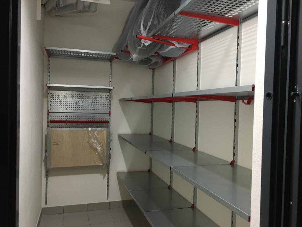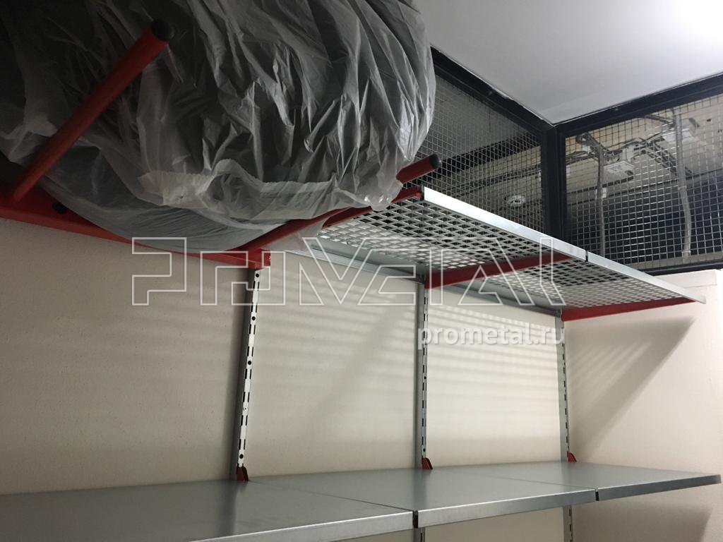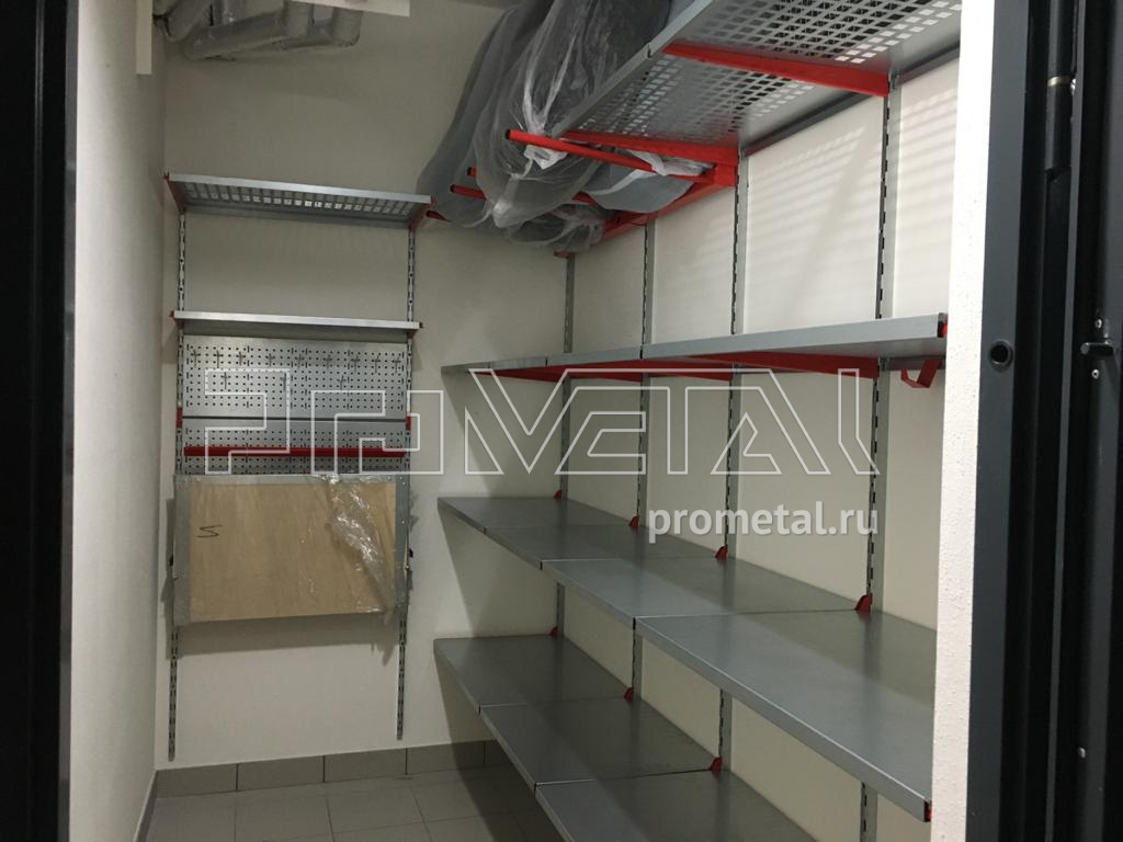 Небольшая кладовая для Игоря из Москвы. Перед заказом Игорь приехал к нам в офис на ул. Милашенкова 3к2 посмотреть, изучить продукцию. После краткого обзора Игорь выслал нам размеры и фотографии своей кладовой, все началось с полок, потом появилась идея разместить складной стол-верстак и обустроить над ним небольшую рабочую зону с помощью перфопанелей, колеса разместили сверху на кронштейнах-держателях для колес.