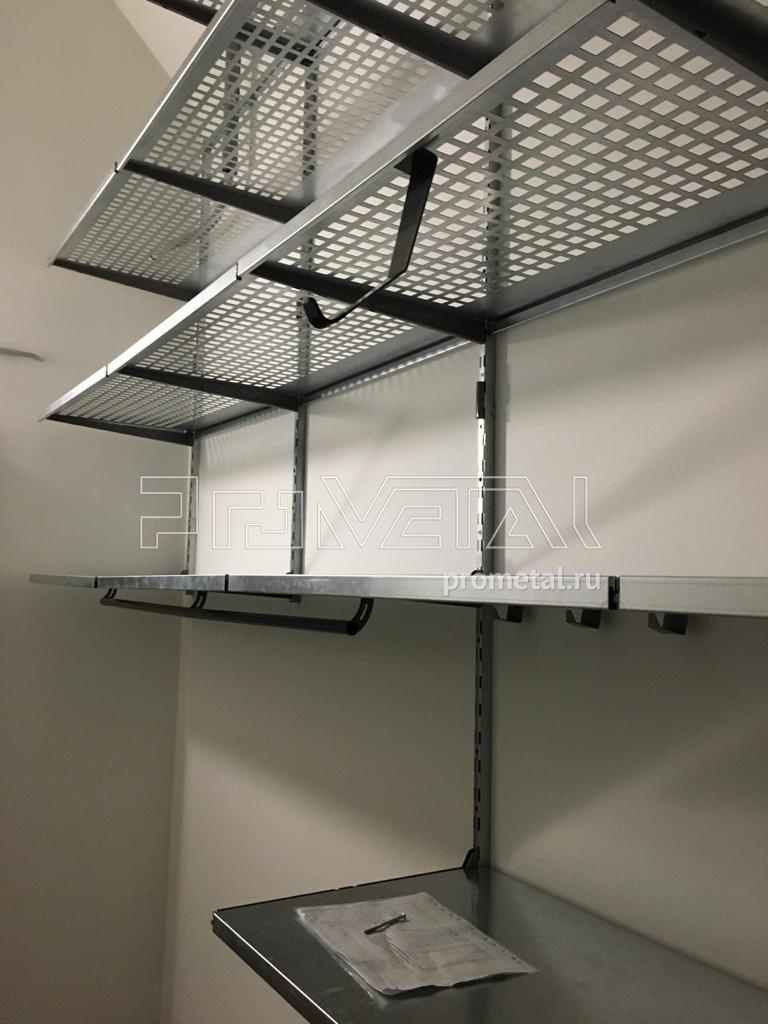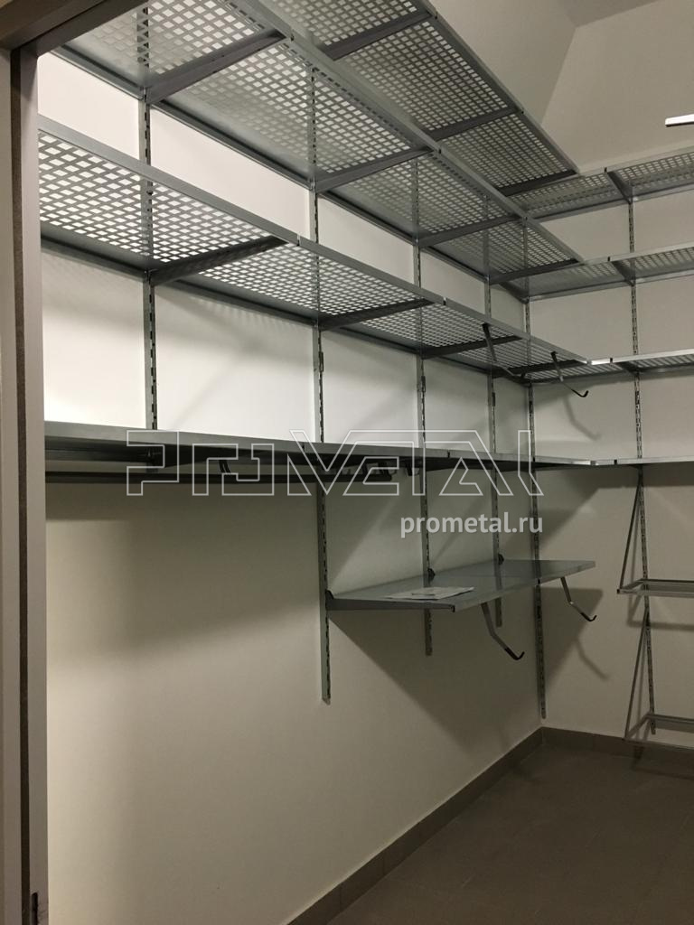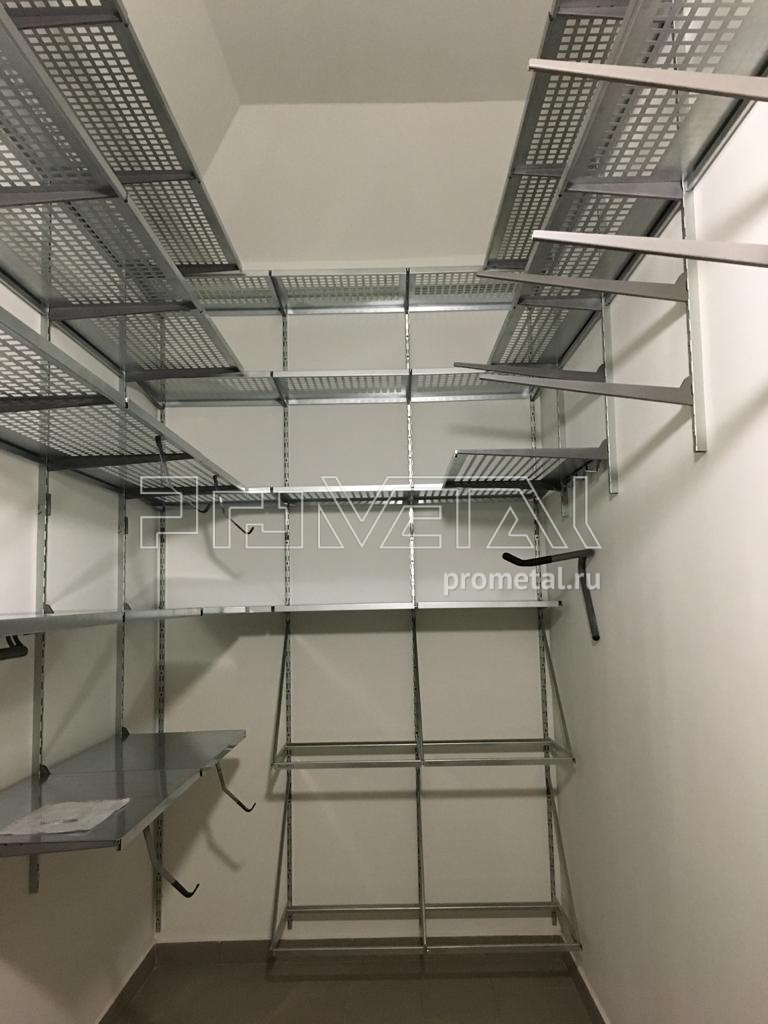 Обустроили кладовую в ЖК Кутузовский Лайф для Максима. Далеко не первая кладовая в этом ЖК. Специфика кладовых в "Кутузовском" - очень высокие потолки, выше 4ех метров. Мы обычно провешиваем полки до 3,2м, если требуется провесить выше - мы согласовываем это с заказчиком. Стандартные стеллажи такой высоты изготовить довольно проблематично, особенно когда высота потолка в кладовой может меняться из-за различных коммуникаций, которые проходят под потоком.