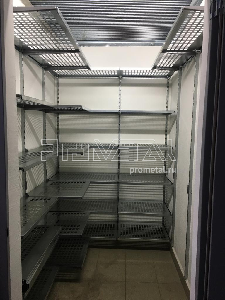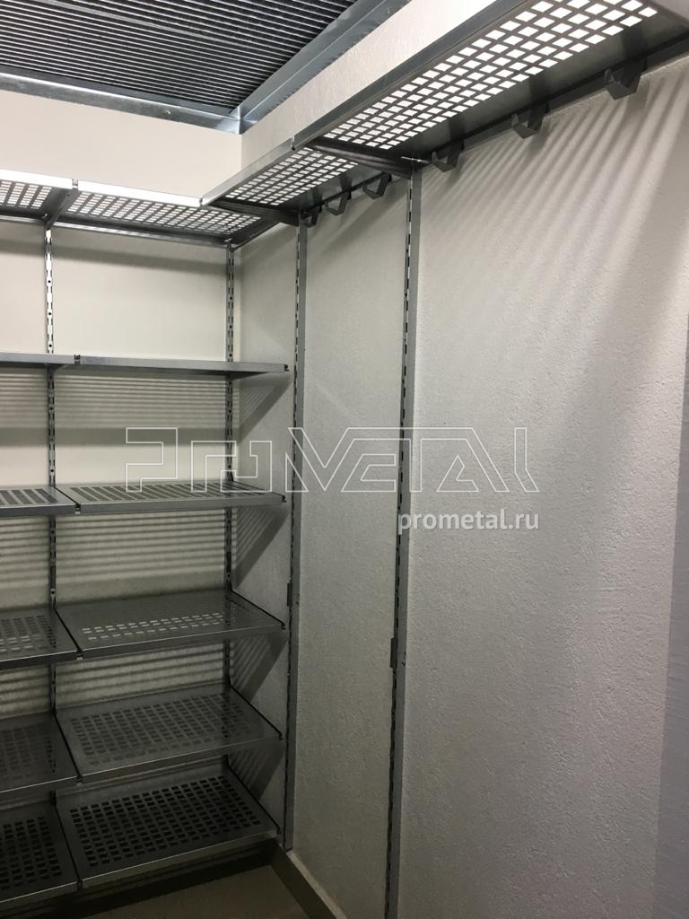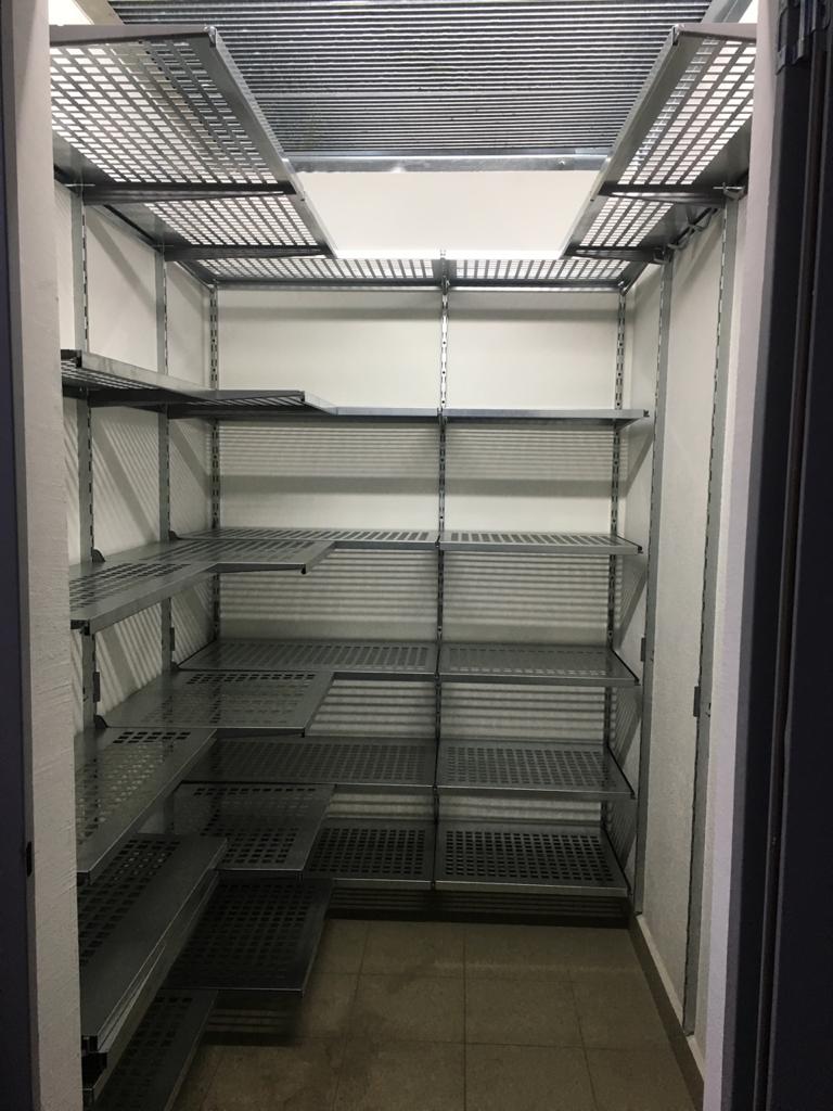 Этот проект не исключение, прекрасная заказчица Ксения попросила обустроить кладовую на несколько семей, кладовая небольшая, заказчики планируют хранить там вещи в коробках на полках, поэтому задача была разместить максимальное количество полок. Все полки заказчица попросила сделать перфорированные, т.к. наш специалист-замерщик (который очень хорошо знаком с домом и основными болячками данного ЖК) предупредил что иногда кладовые затапливает.