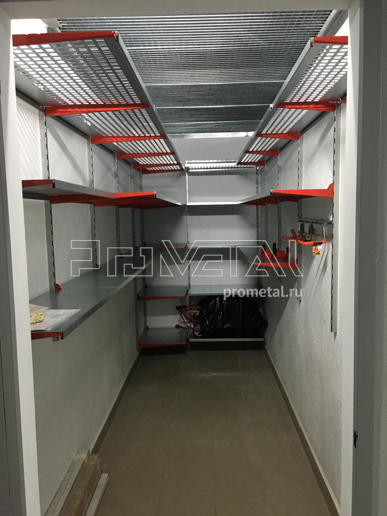 В кладовой для Рубена мы предусмотрели полки глубиной 315 и 520мм, сверху полки перфорированные, которые частично пропускаю свет, снизу полки цельные.