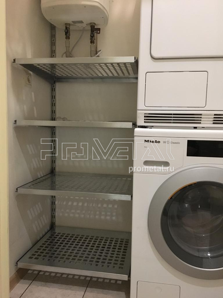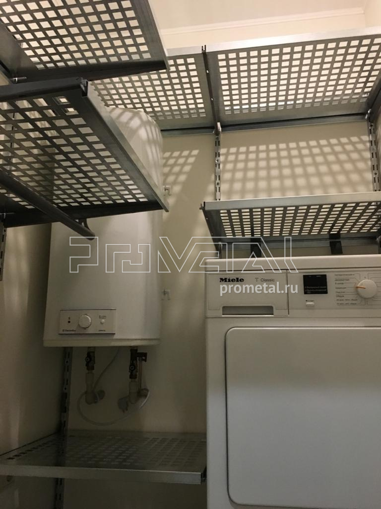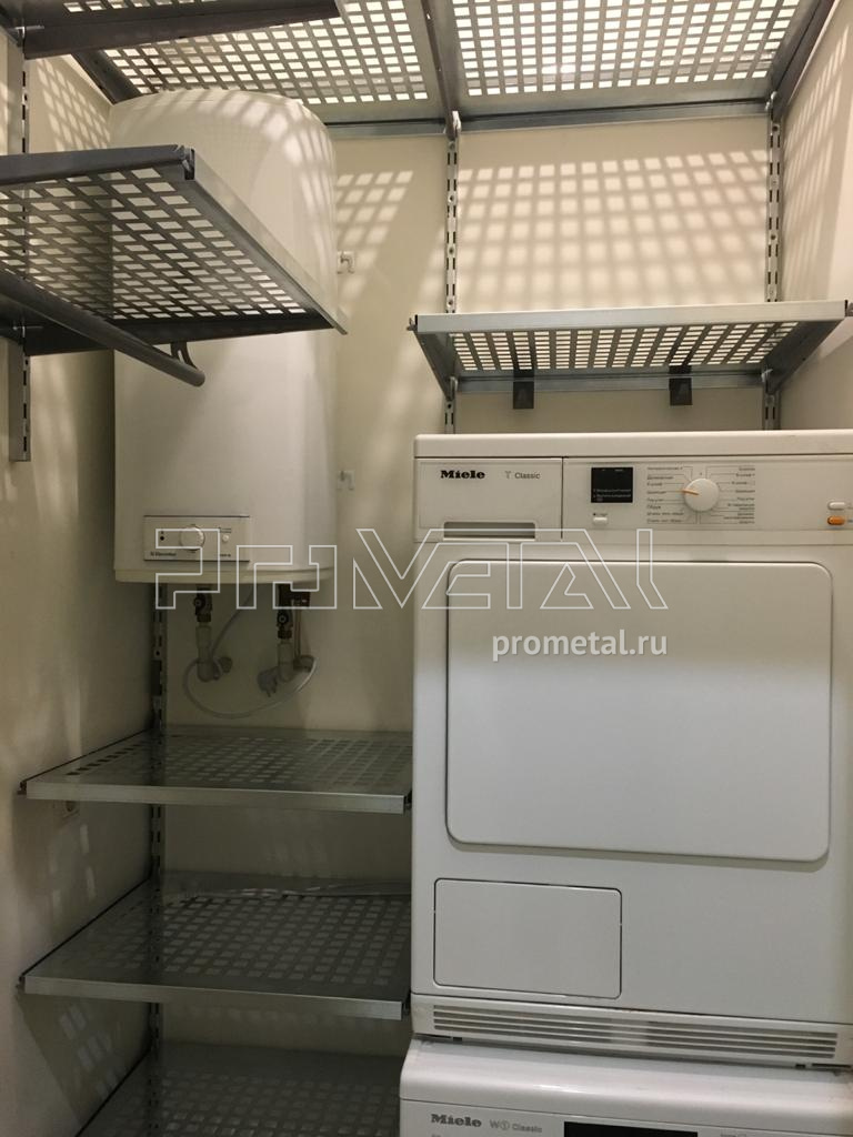 Обустроили небольшое кладовое помещение для Юлии из Москвы. Помещение используется для стирки и хранения белья, обычные напольные стеллажи установить в помещении невозможно, но с нашей мобильной системой мы легко обошли все коммуникации и расширили функционал помещения.