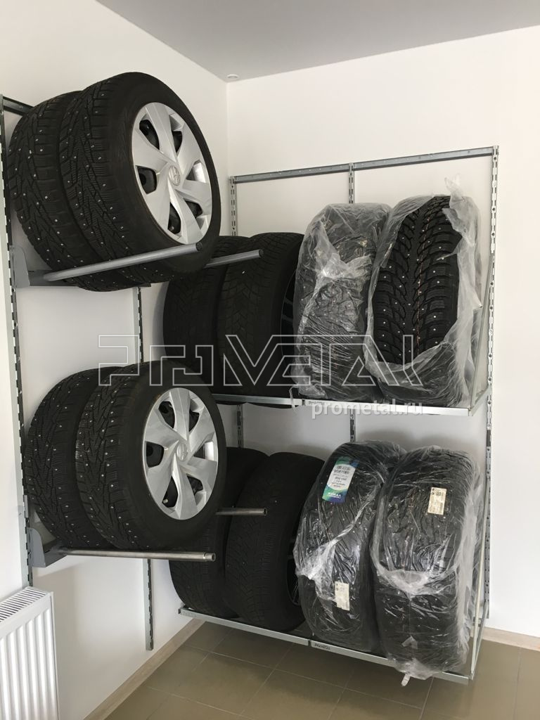 Обустроили гараж для Владислава в Московской области, район Новой Риги. Заказчик поставил задачу - разместить 3 комплекта автомобильных колес, обустроить одну стену полками под хранение различных вещей.