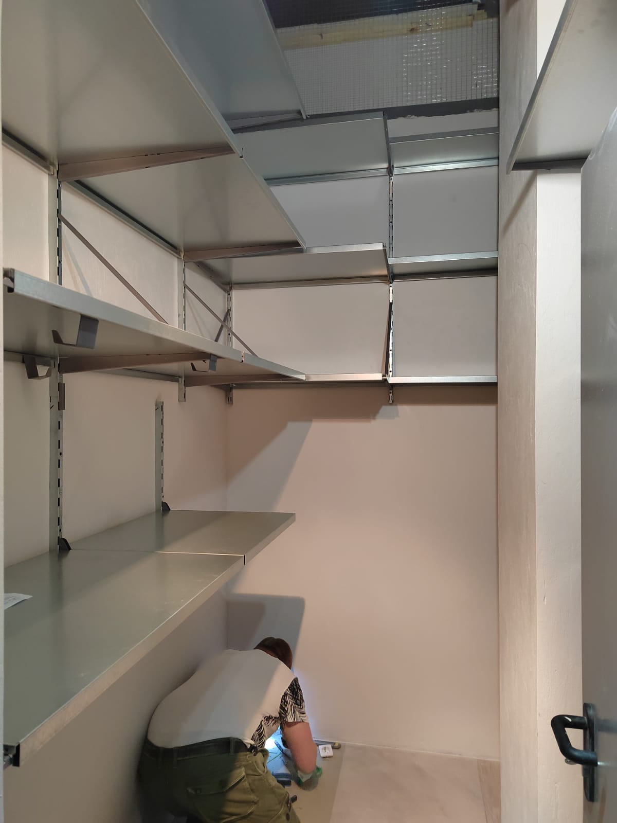 Кладовая в Москве, ЖК "Фонвизинский". Достаточно простой запрос поступил от Константина, нужно обустроить кладовую, предусмотреть как можно больше полок, обойти все коммуникации и неровности на стенах в кладовой. На замер выезжал наш специалист, снял точные размеры помещения, сделал фотографии помещения и записал пожелания заказчика. Через несколько дней проект был готов и согласован, выбрали удобную дату монтажа. Мастер установил стеллажную систему за один день.