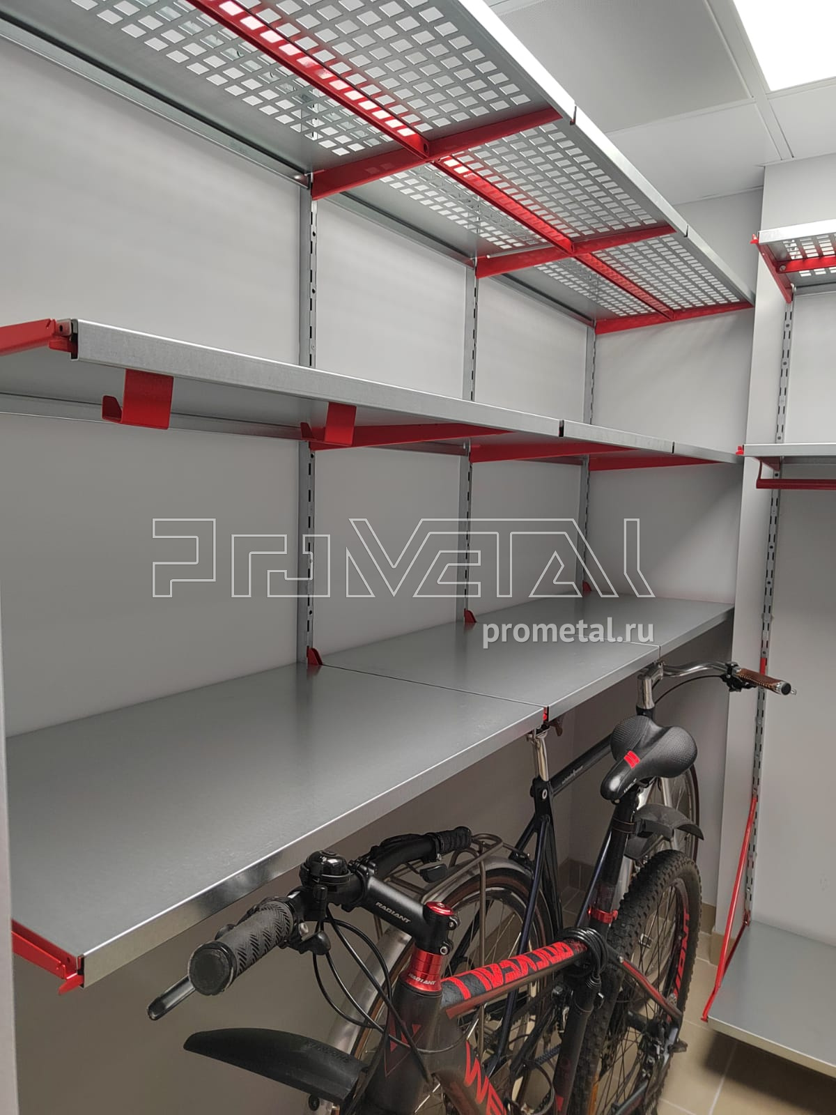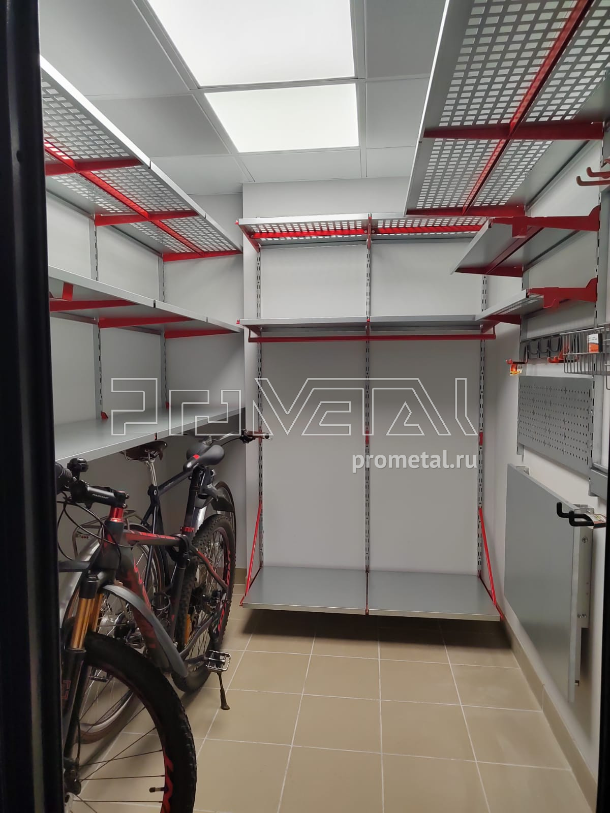 Проект кладовых получились на наш взгляд очень удобными и эффективными. В новой кладовой мы предусмотрели хранение велосипедов на полу под полками, штанги для плечиков по центральной стене, остальную площадь стен отдали под полки для хранения различных вещей в коробках и пластиковых боксах. При входе установили рейлинги с крюками Эссе для хранения стремянок и прочего инвентаря. Из старой кладовой мы убрали держатели для велосипедов, откидной стол, на освободившуюся площадь добавили полки.