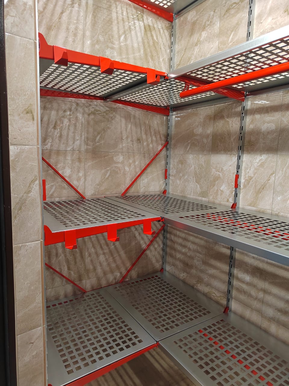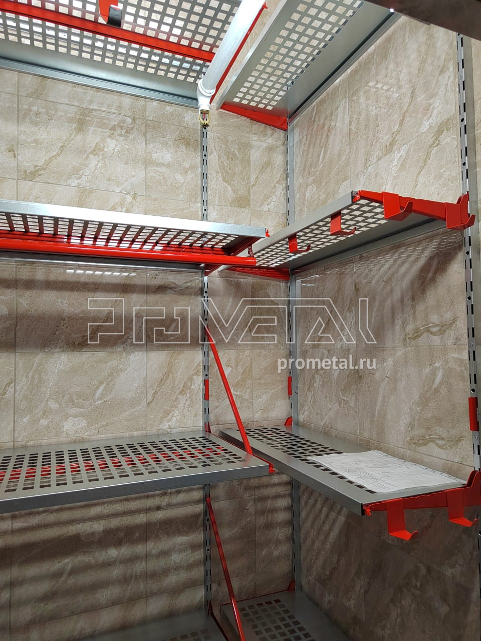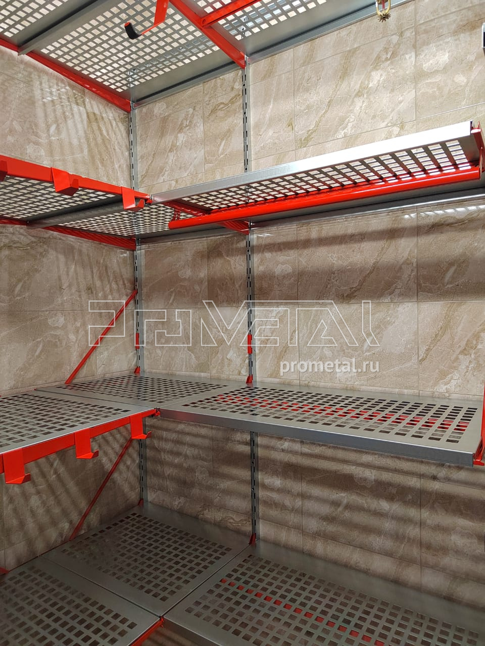 Небольшая кладовая в Москве. Заказчик поставил задачу предусмотреть максимально возможное количество полок в кладовой. Размеры предоставили по эл. каналам связи, в кратчайшие сроки подготовили проект, согласовали и выбрали дату монтажа. Комплект был смонтирован в течение одного дня нашим специалистом.