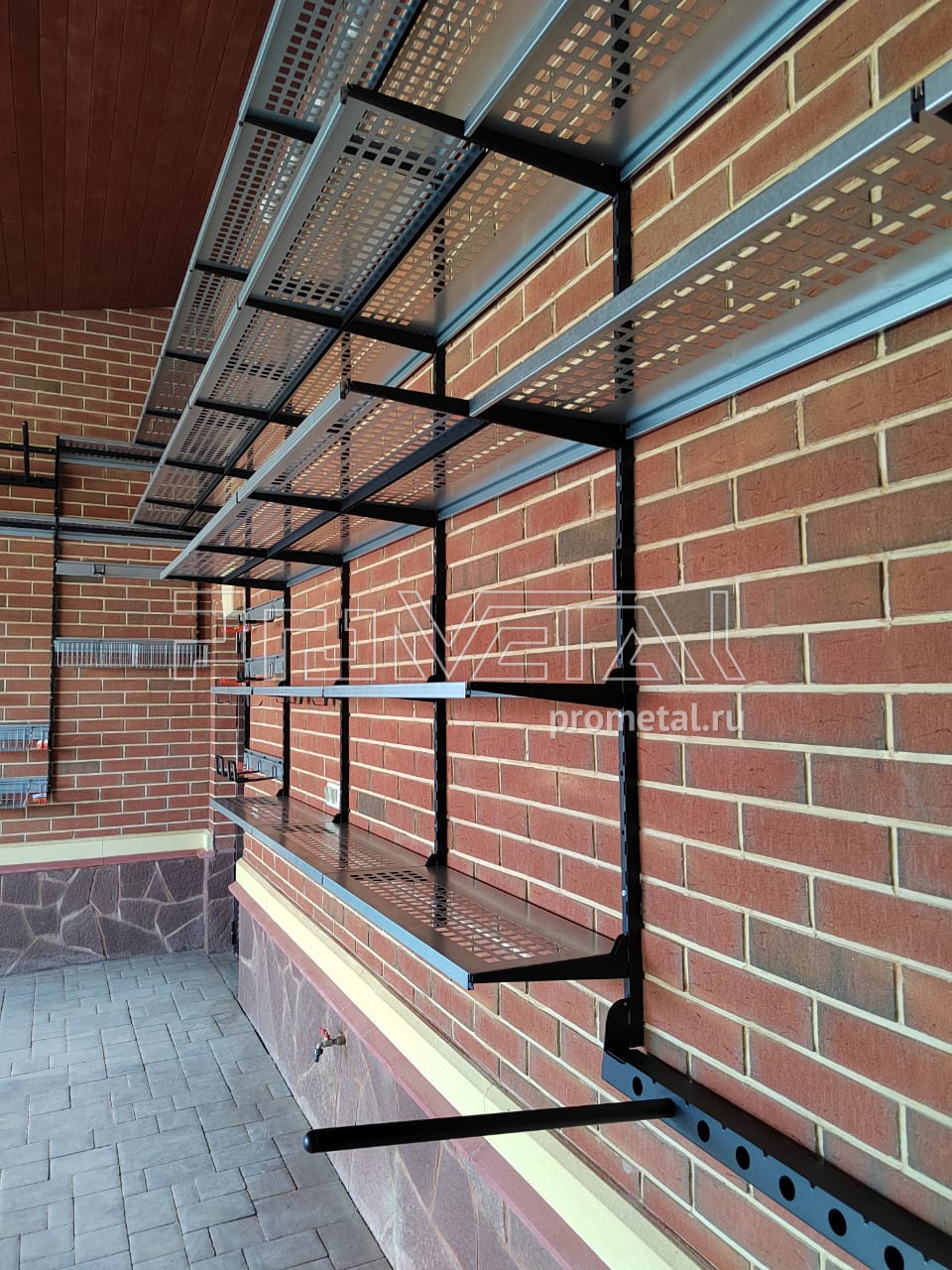 Обустроили гараж/навес для Дмитрия, Московская область, КП "Английский квартал". Рабочий процесс с этим объектом был стандартный - знакомство, замер, проект, спецификация, монтаж. Во время замера Дмитрий показал свои наброски, обсудили - подкорректировали и по этим эскизам сделали проект. Согласовали в кратчайшие сроки, согласовали удобную дату монтажа и наш специалист установил стеллажные системы за один день.