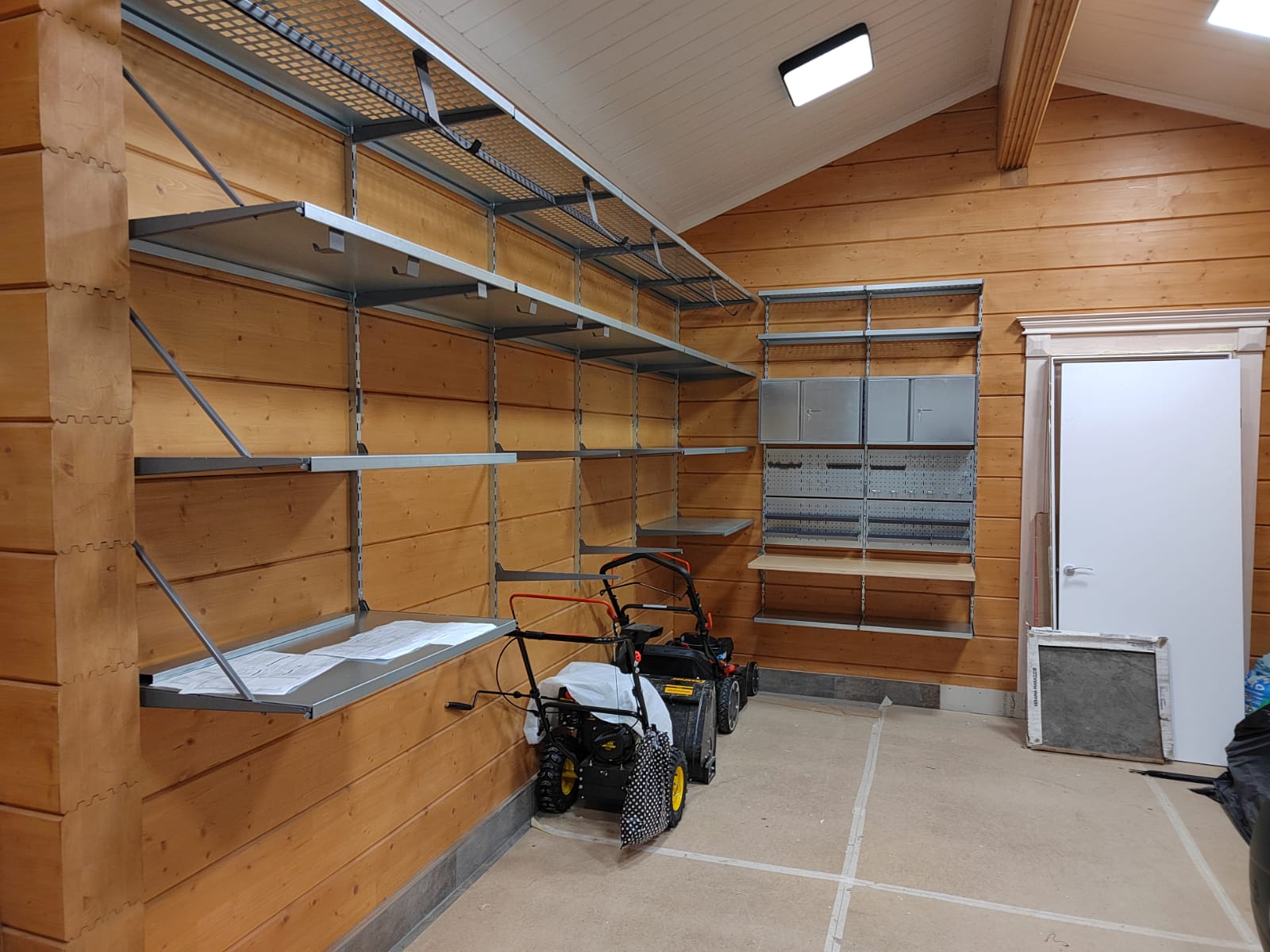 Обустроили гараж-мастерскую для Николая в Московской области, берег Honka. На объект выезжал наш замерщик, снял точные размеры, обсудил пожелания заказчика, сделал фотографии. Проект был разработан в течение недели, внесли небольшие изменения и согласовали дату монтажа.