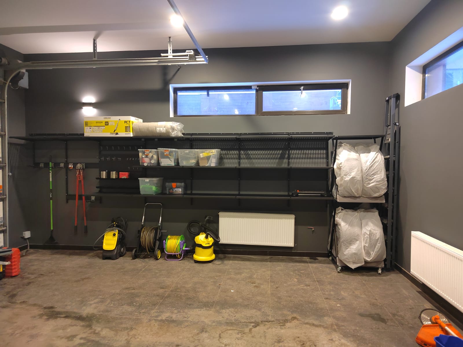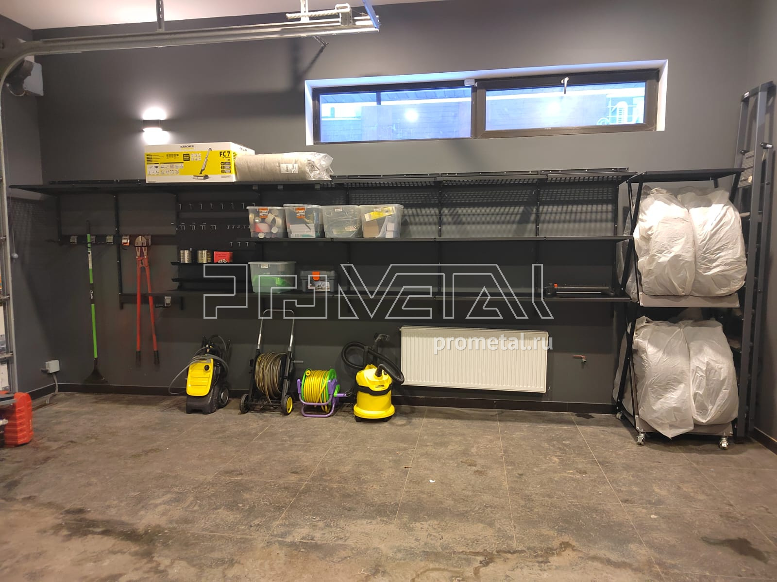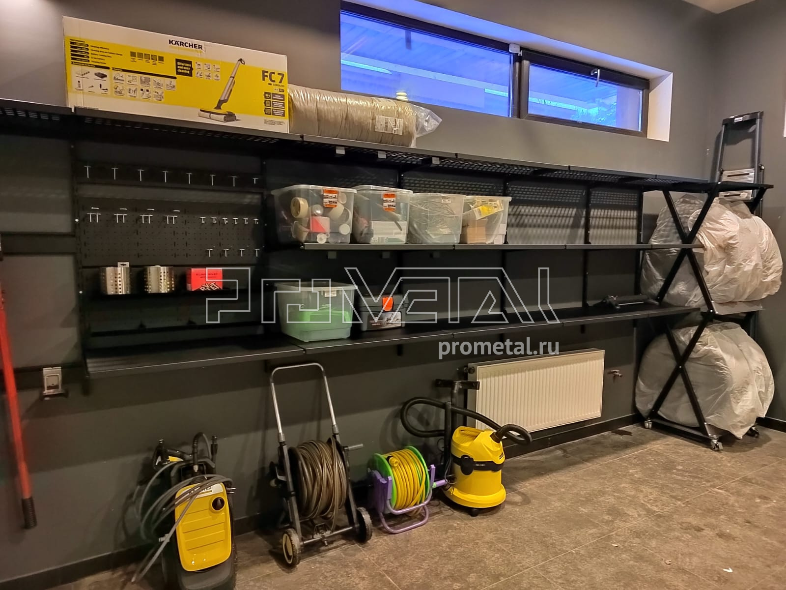Обустроили гараж и кладовую для Александры. На замер выезжал наш специалист. При встрече обсудили все детали, выслушал пожелания заказчицы. Одно из пожеланий было - дополнительно окрасить весь комплект стеллажной системы, который монтируем в гараже, в чёрный цвет, как производитель, наша компания имеет технические возможности окрасить любые элементы стеллажной системы (полки, перфопанели, рейлинги и т.д.) в любой цвет, срок изготовления стеллажей в индивидуальном окрасе зависит от загрузки на производстве, в среднем - 14-18 дней. Проект был разработан в течение 7 дней. Наш мастер справился с монтажом за один день.
