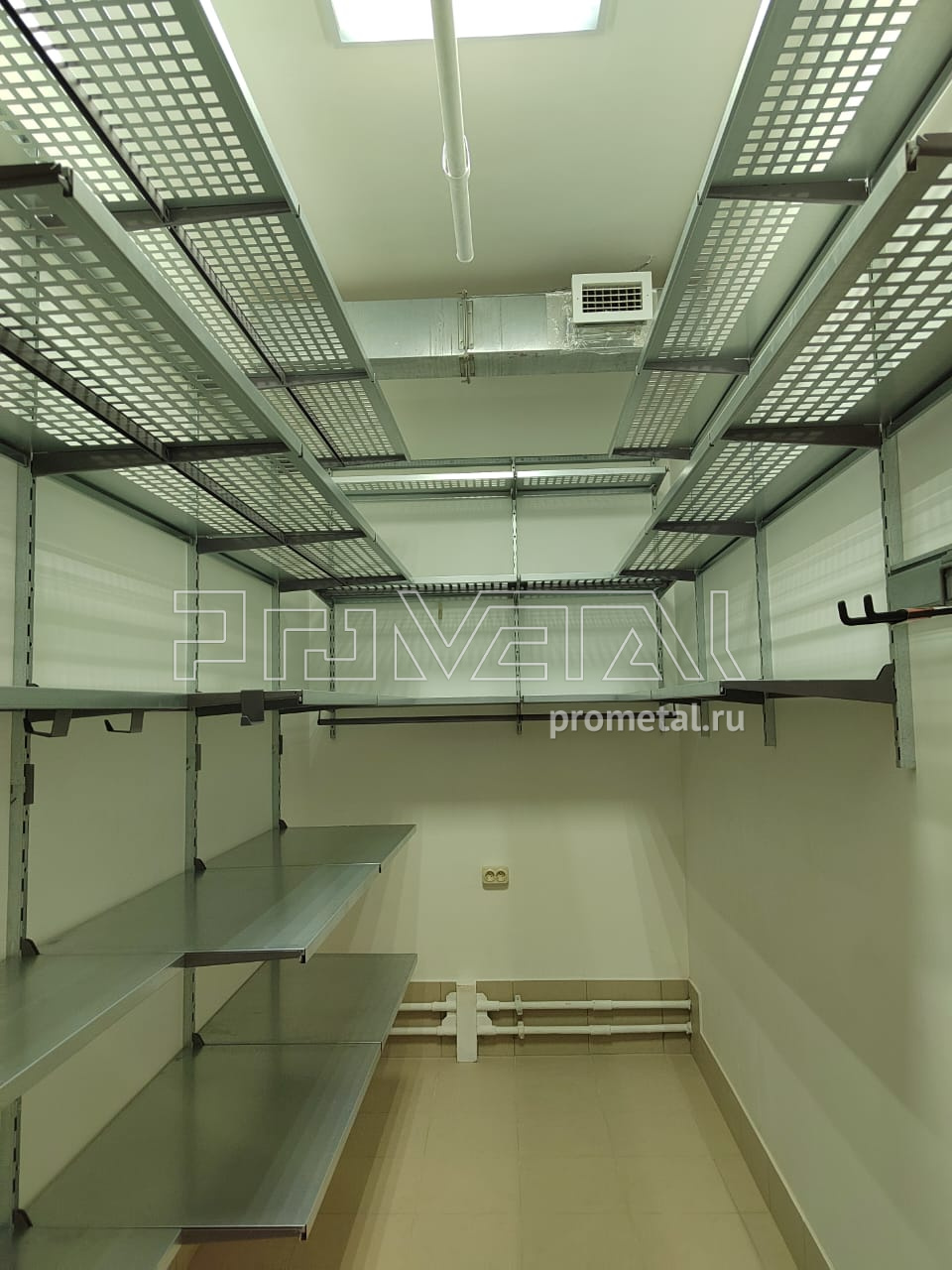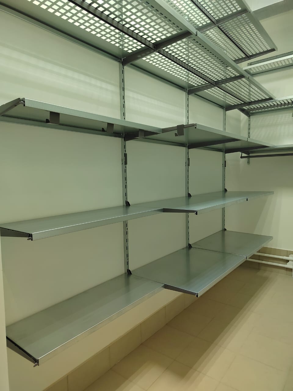 Обустройство кладовой. Точные размеры помещения были отправлены нам по электронным каналам связи. Проект был разработан и согласован в течение недели. Но выполнить монтаж удалось только через полгода, ждали пока бригада рабочих закончит отделку кладовой. Наш мастер выполнил монтаж за один день.