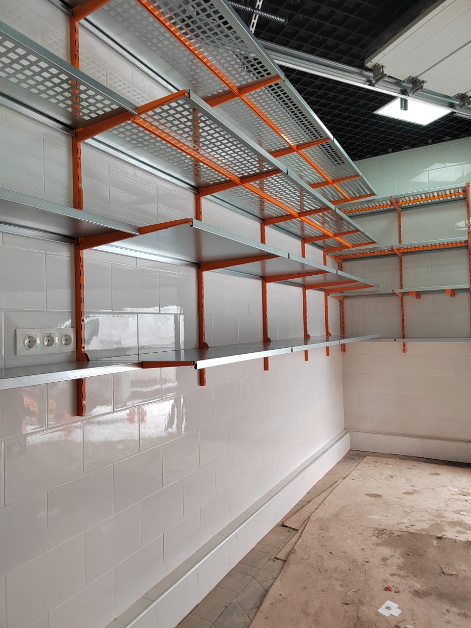 Оборудовали гараж в Московской области, дер. Коростово. Замер объекта осуществил наш специалист. В процессе замера обсудили детали будущего проекта с заказчиком. В этом проекте было решено окрасить несущий каркас и отдельные элементы стеллажной системы в оранжевый цвет, наша компания имеет технические возможности окрасить любые элементы стеллажной системы (полки, перфопанели, рейлинги и т.д.) в любой цвет, срок изготовления стеллажей в индивидуальном окрасе зависит от загрузки на производстве, в среднем - 14-18 дней. Проект был разработан в течение недели. Монтаж был выполнен нашим мастером за один день.
