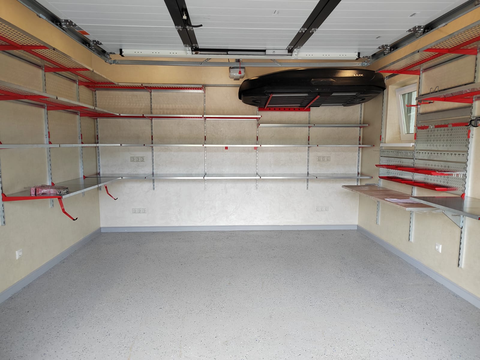 Обустроили гараж в КП "Визендорф".Заказчик выслал точные размеры помещения и фотографии по электронным каналам связи, попросил сделать расчет. В течение недели проект был разработан и согласован. Наш мастер выполнил монтаж стеллажной системы за день.