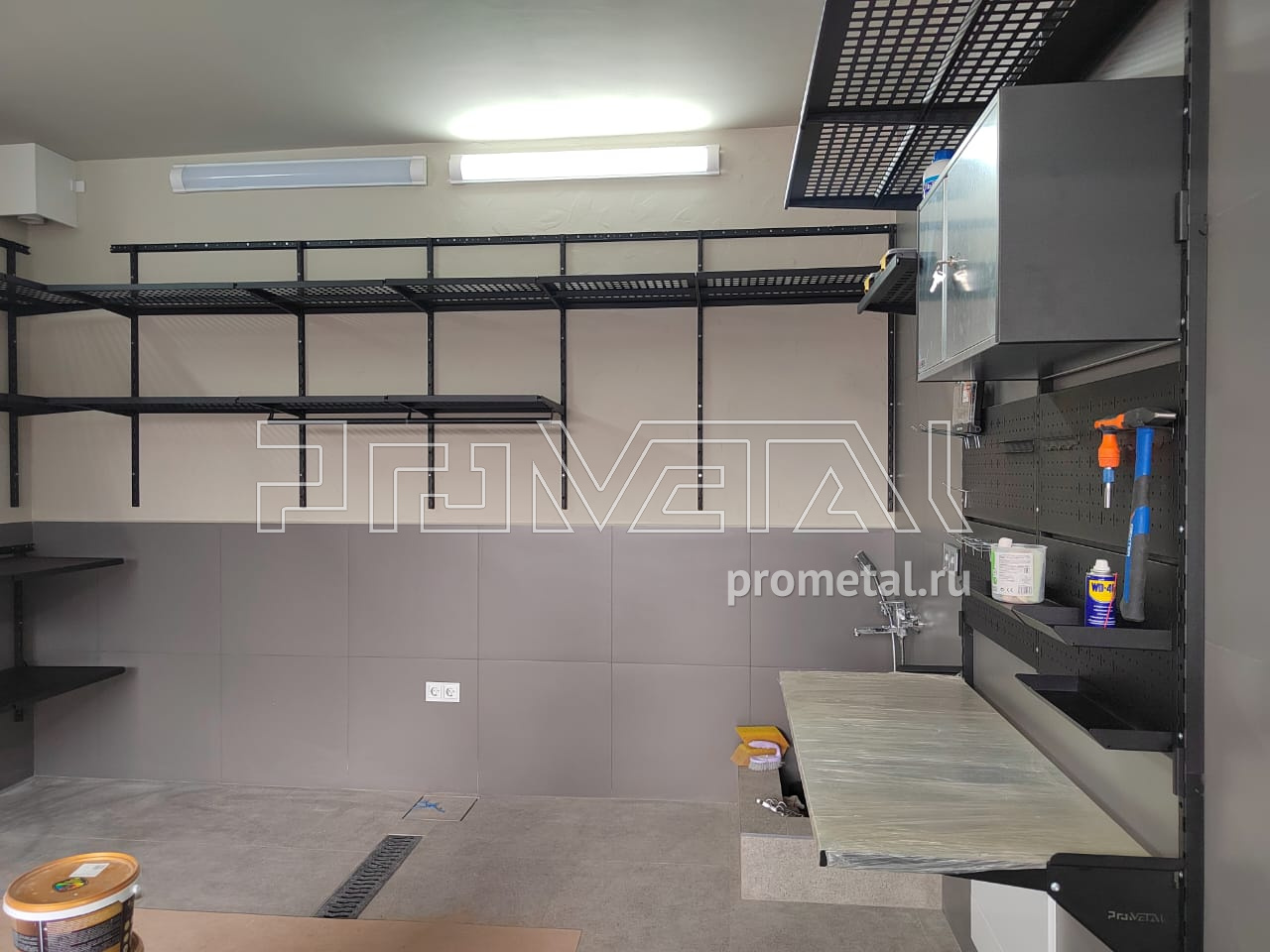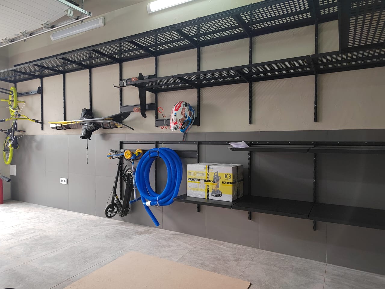 Обустроили гараж в Московской области, КП "Пятница". Точные размеры гаража и список вещей, которые там будут храниться - были отправлены нам по электронным каналам связи. Проект был разработан и согласован в течение недели. Монтаж был выполнен нашим специалистом за один день.
