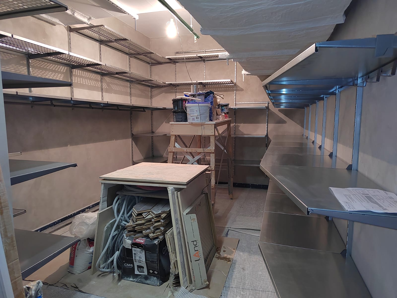 Обустроили кладовую в Москве, ЖК "Западный порт". На объект выезжал наш специалист, снял точные размеры помещения, обсудил с заказчиками детали будущего проекта, вместе составили список вещей, которые будут храниться в помещении. В течение нескольких дней проект был разработан и согласован. Наш монтажник произвел установку стеллажной системы за день.