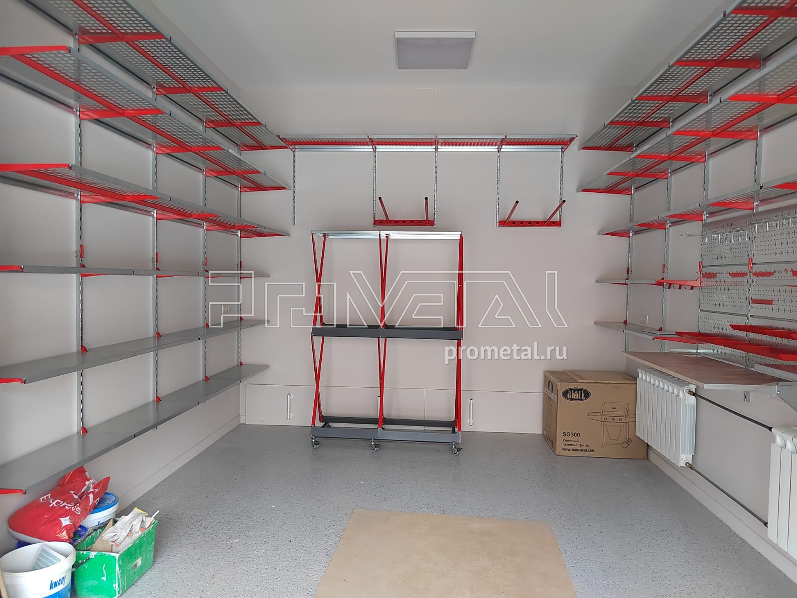 Обустроили гараж в Московской области, г. Балашиха. У заказчика был стандартный запрос - требуется комплексное обустройство помещения "под ключ". Замер, проект, монтаж. Срок реализации проекта с даты замера - две недели.