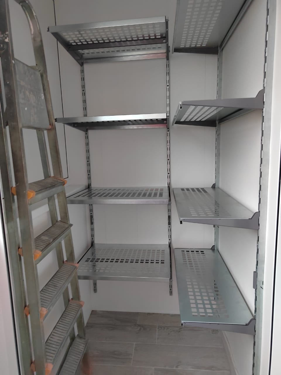 В проекте задействованы полки с перфорацией глубиной 315 и 520мм. Глубокие полки 520мм усилены рёбрами жёсткости. Снизу, под полками, оставили место под хранение нескольких комплектов колёс.