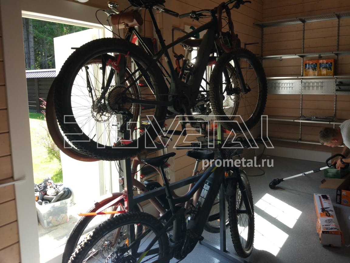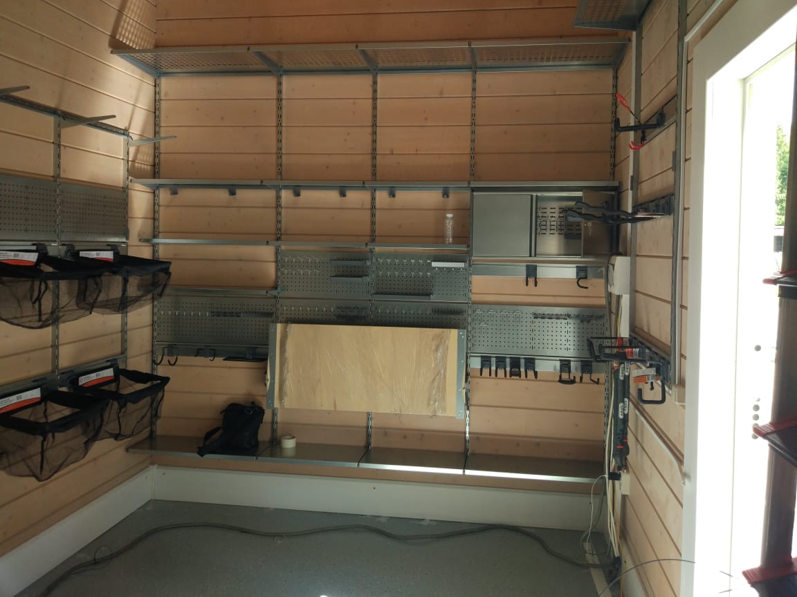 Запрос хозяина - разместить: снегоход, газонокоилку, 4 велосипеда, сёрф надувной в "боевом состоянии", лодку надувную, мотор, аккумулятор, 6 пар лыж, слесарный стол с инструментом, прочий обычный хозяйственный и спортивный инвентарь... Разместили! Всё!